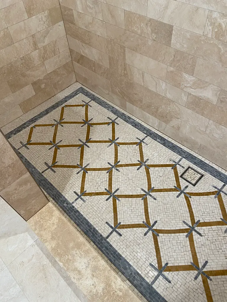 Introducing our stunning Geometric Pattern Mosaic Art, a captivating piece that seamlessly blends artistry and craftsmanship. This exquisite mosaic showcases a design reminiscent of a chainlink fence, characterized by its intricate geometric patterns that will enhance the aesthetic of any space. Handcrafted by skilled artisans, each piece is meticulously created from high-quality marble, ensuring durability and timeless elegance. The natural veining and color variations in the marble add a unique dimension to the art, ensuring that no two pieces are exactly alike. Whether you're looking to add a touch of sophistication to your indoor decor or elevate your outdoor living area, this versatile mosaic art is perfect for both settings.Imagine this striking mosaic adorning your garden, patio, or living room wall, creating a focal point that draws the eye and sparks conversation. Its combination of modern design and natural material offers a harmonious contrast that complements a wide range of interior styles, from contemporary to rustic.This Geometric Pattern Mosaic Art is not just a decorative item, but a true statement piece that speaks to your personal taste and appreciation for handcrafted artistry. Ideal for home decor enthusiasts, art collectors, or anyone looking to transform their space with a touch of culture and creativity. Bring art into your life with this beautiful geometric mosaic, a timeless addition that will enhance the ambiance of your home for years to come. Make it yours today and enjoy the unique beauty it brings to your environment.