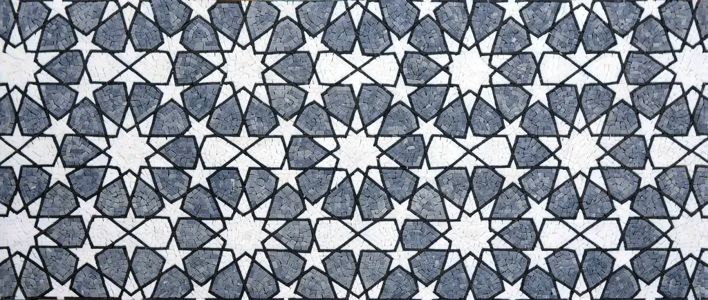 Transform your space with the captivating beauty of our Geometrical Flowers & Stars Pattern - Arabesque Mosaic. This exquisite handcrafted mosaic combines intricate geometrical flowers and star designs in a breathtaking arabesque layout, making it a perfect statement piece for any home or commercial setting. Crafted from natural stones, each tile showcases unique textures and rich colors, ensuring that your mosaic is truly one-of-a-kind. The harmonious patterns blend seamlessly with any decor style, from classic to contemporary, adding a touch of sophistication and elegance to your floors. Ideal for a variety of environments, the Geometrical Flowers & Stars Pattern - Arabesque Mosaic is suitable for high-traffic areas such as entrances and lobbies, as well as tranquil spaces like rooms and spas. Its durability makes it perfect for both wet and dry settings, allowing you to design spaces like bathrooms, kitchens, or outdoor patios without worry.Elevate your interiors and make a lasting impression with this luxurious mosaic that serves as a striking focal point, drawing the eye and elevating the overall aesthetic of your environment. Choose the Geometrical Flowers & Stars Pattern - Arabesque Mosaic for a timeless addition to your design that embodies both beauty and functionality.