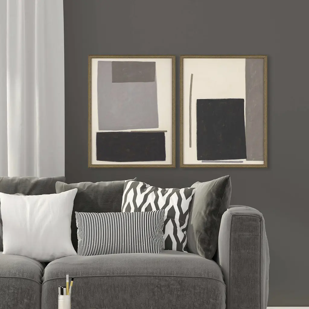 Geometrics Black And Beige And Gray Framed Art