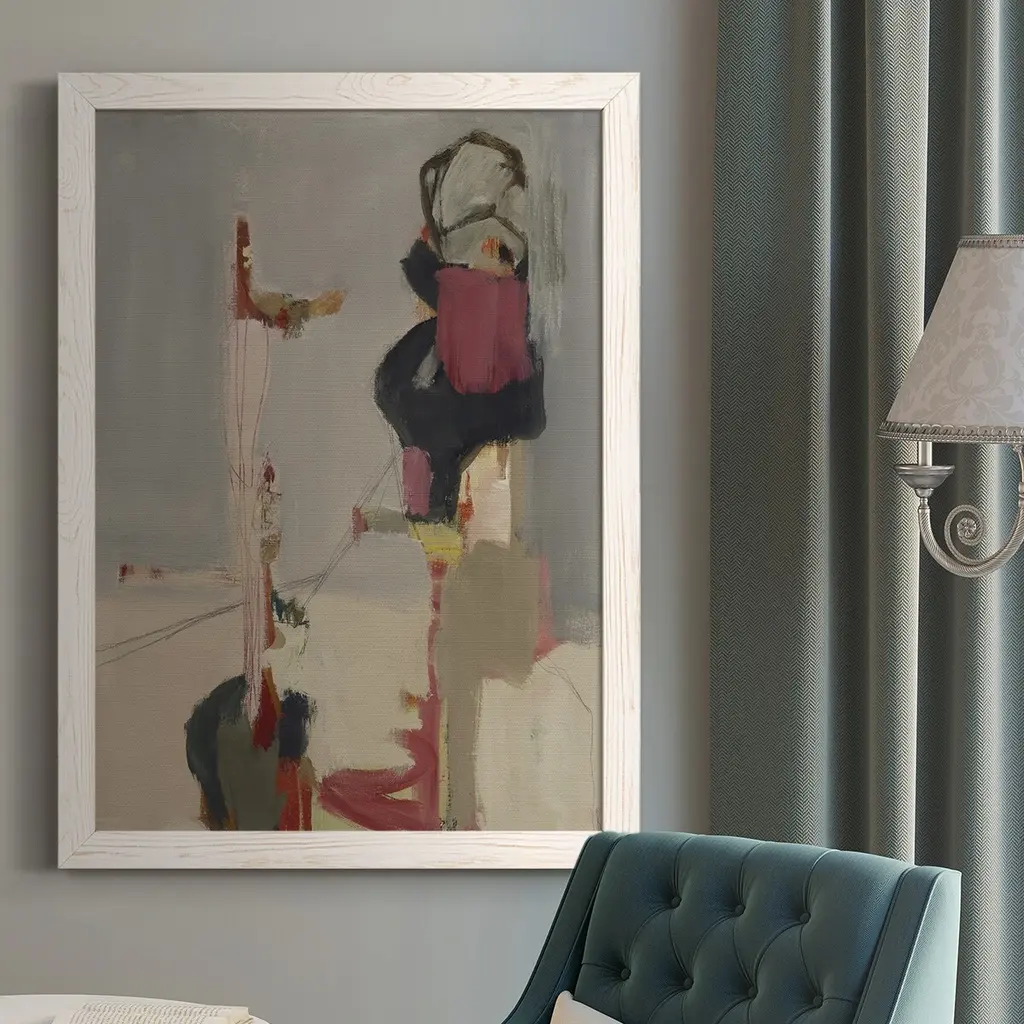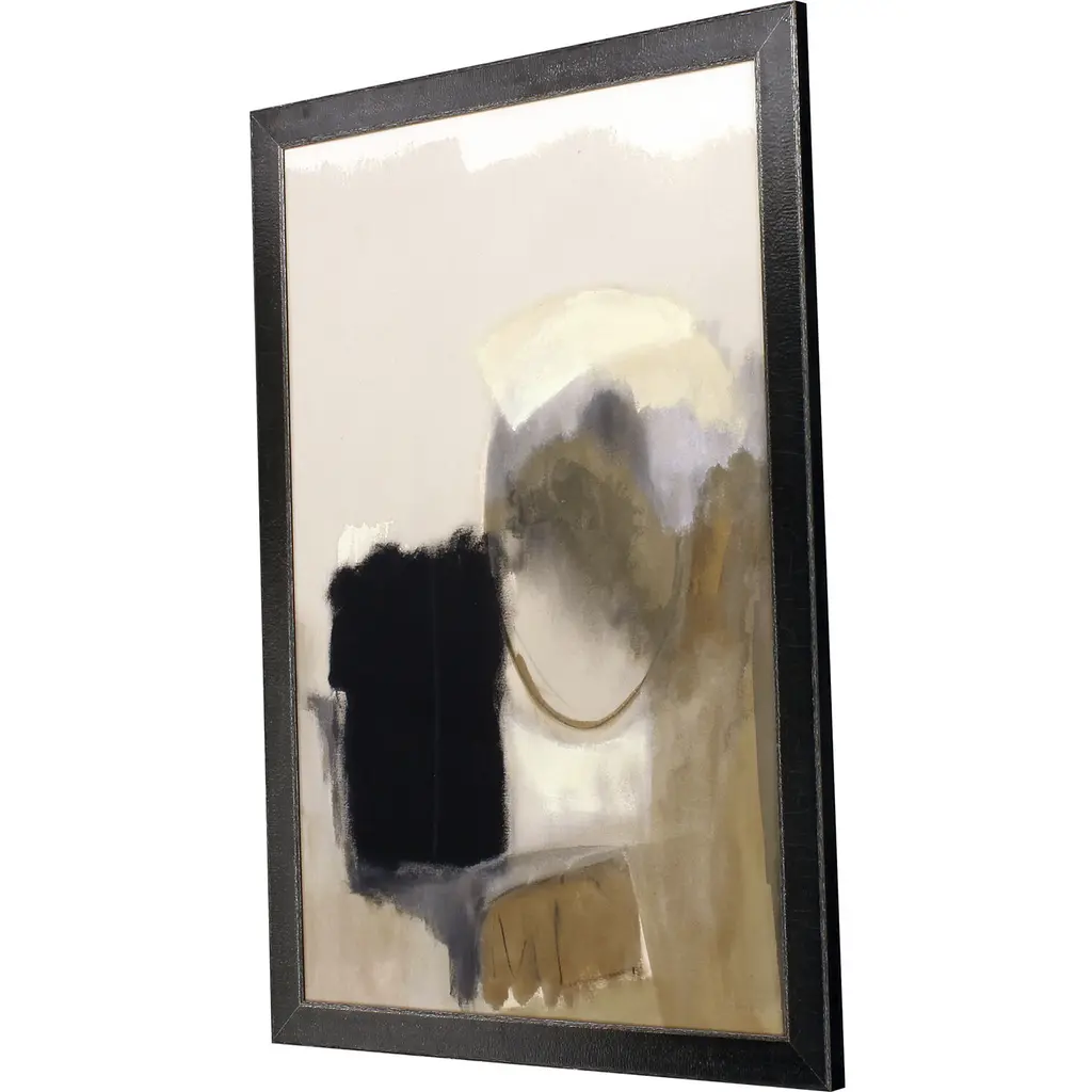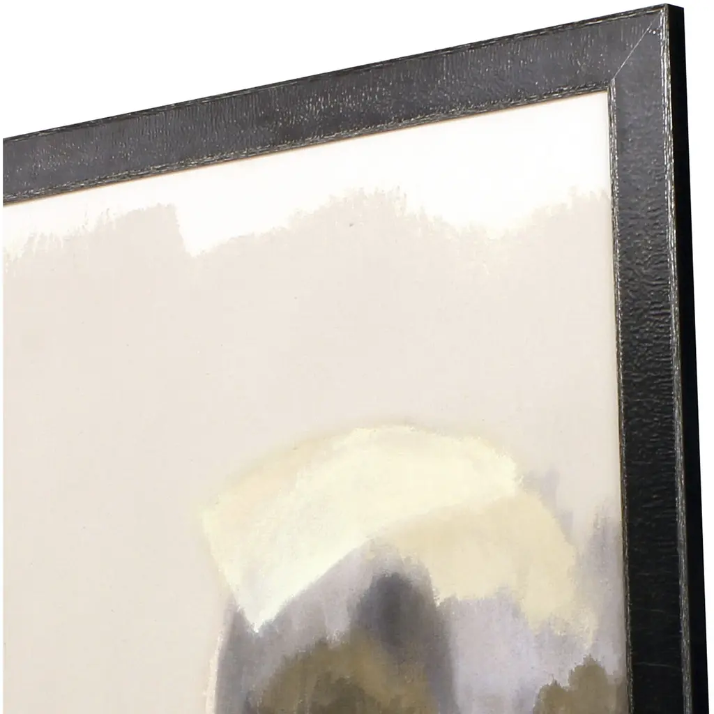 Sweeping brushes of color coalesce in contemporary form. Framed in a rubbed espresso wood with silver leaf undertones.