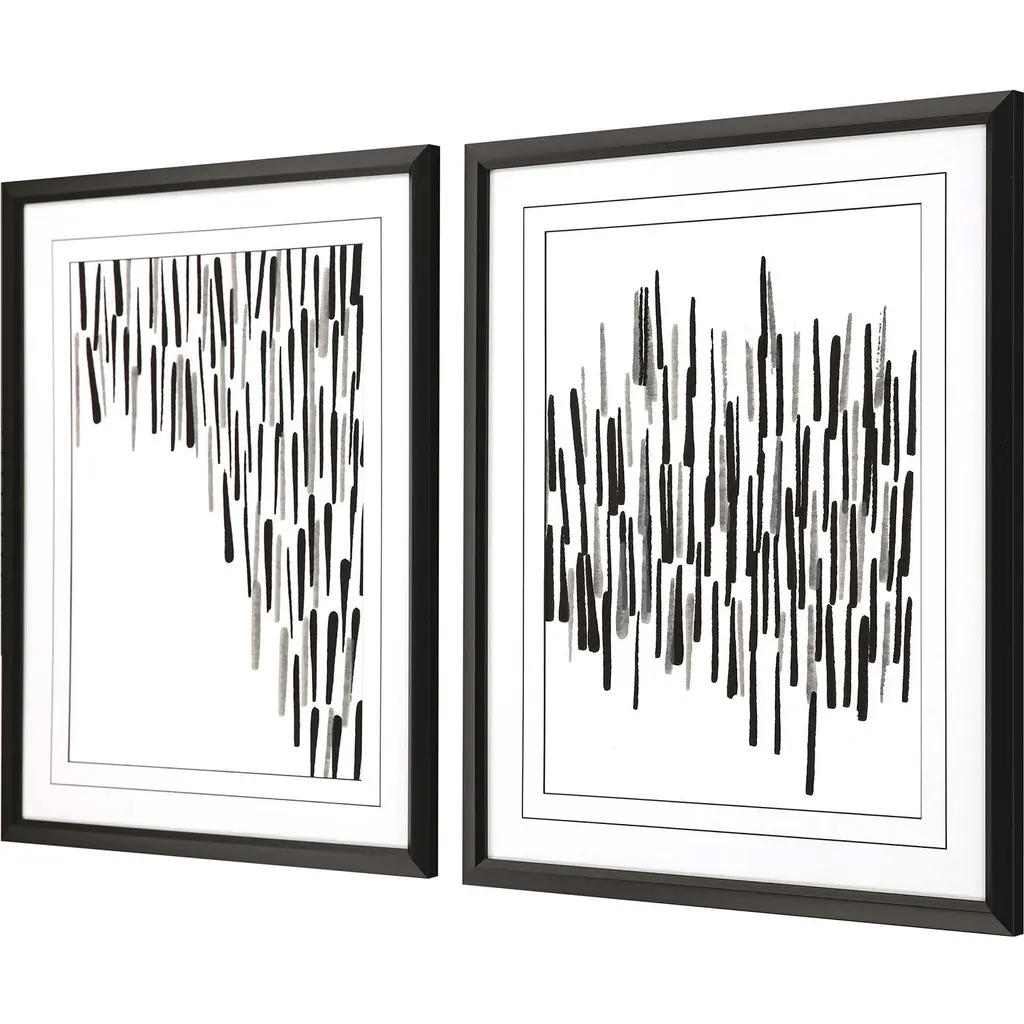 A neutral geometric abstract is matted in white. Framed in a contemporary black finish moulding.