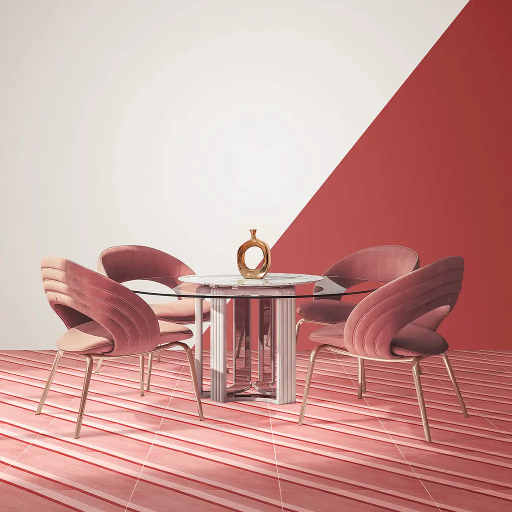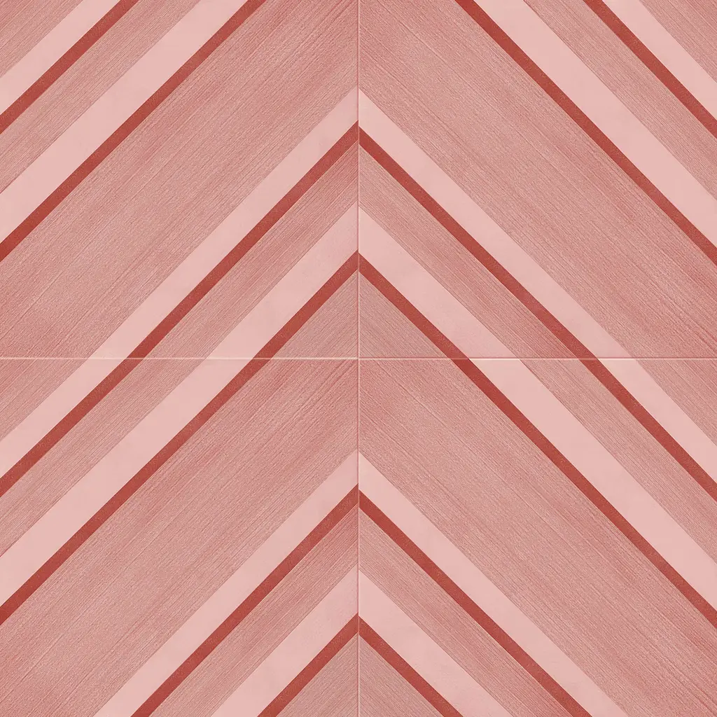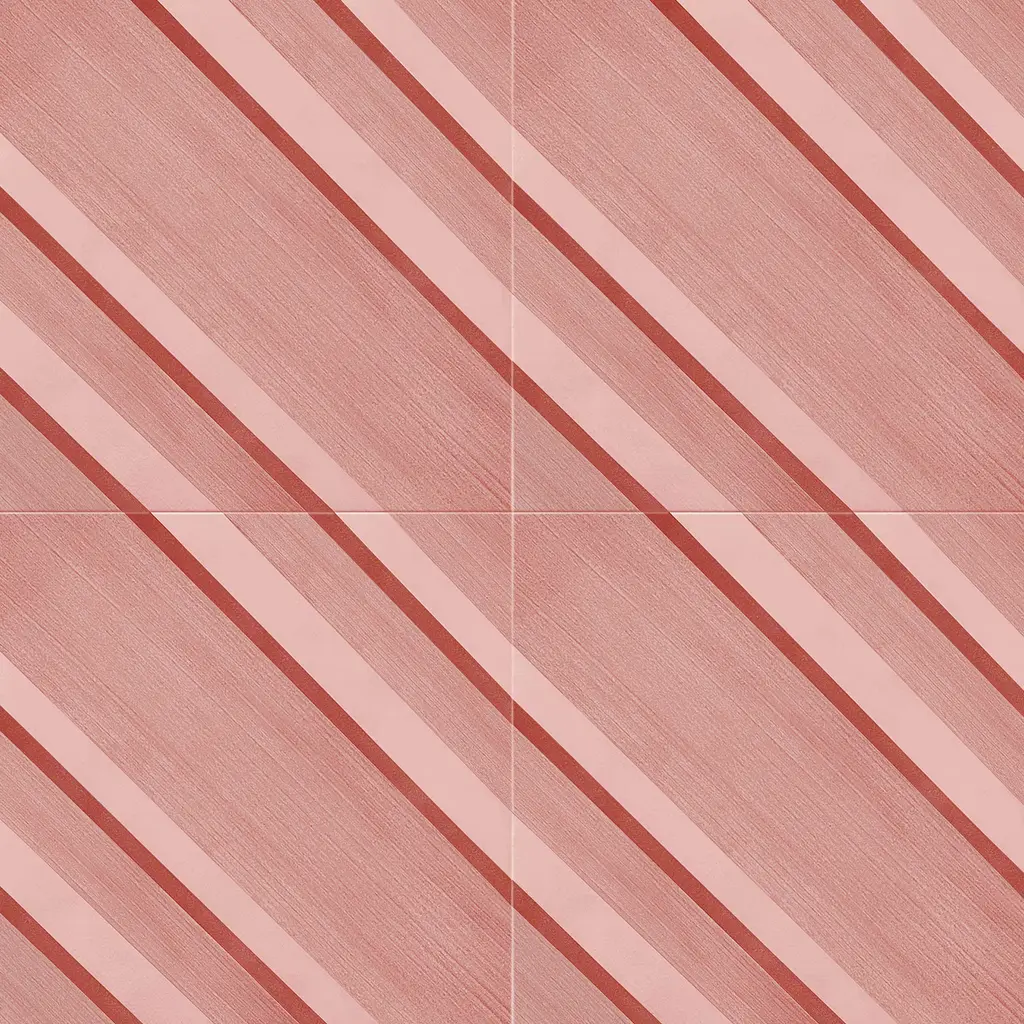Geometrie d’Ombra is a collection of hand-decorated Grès Maiolicato tiles inspired by essential geometric forms—circles, lines, squares, diagonals, and triangles. It represents a refined blend of artisanal tradition and technological innovation. Each tile is crafted using a meticulous hand-decoration technique that creates a striking interplay of light and shadow, lending depth and volume to the geometric designs. The result is a dynamic surface that appears to move and shift, transforming any space into a canvas of ever-changing patterns. The version featured here showcases a diagonal motif and comes in Ruby Red, a rich and passionate hue that enhances the dynamic shadow effect and adds a bold, artistic touch. Versatile and expressive, the tiles can be mixed and matched to form unique compositions, offering endless possibilities for custom interiors. The price is listed per square meter. For more details, please contact the Concierge.