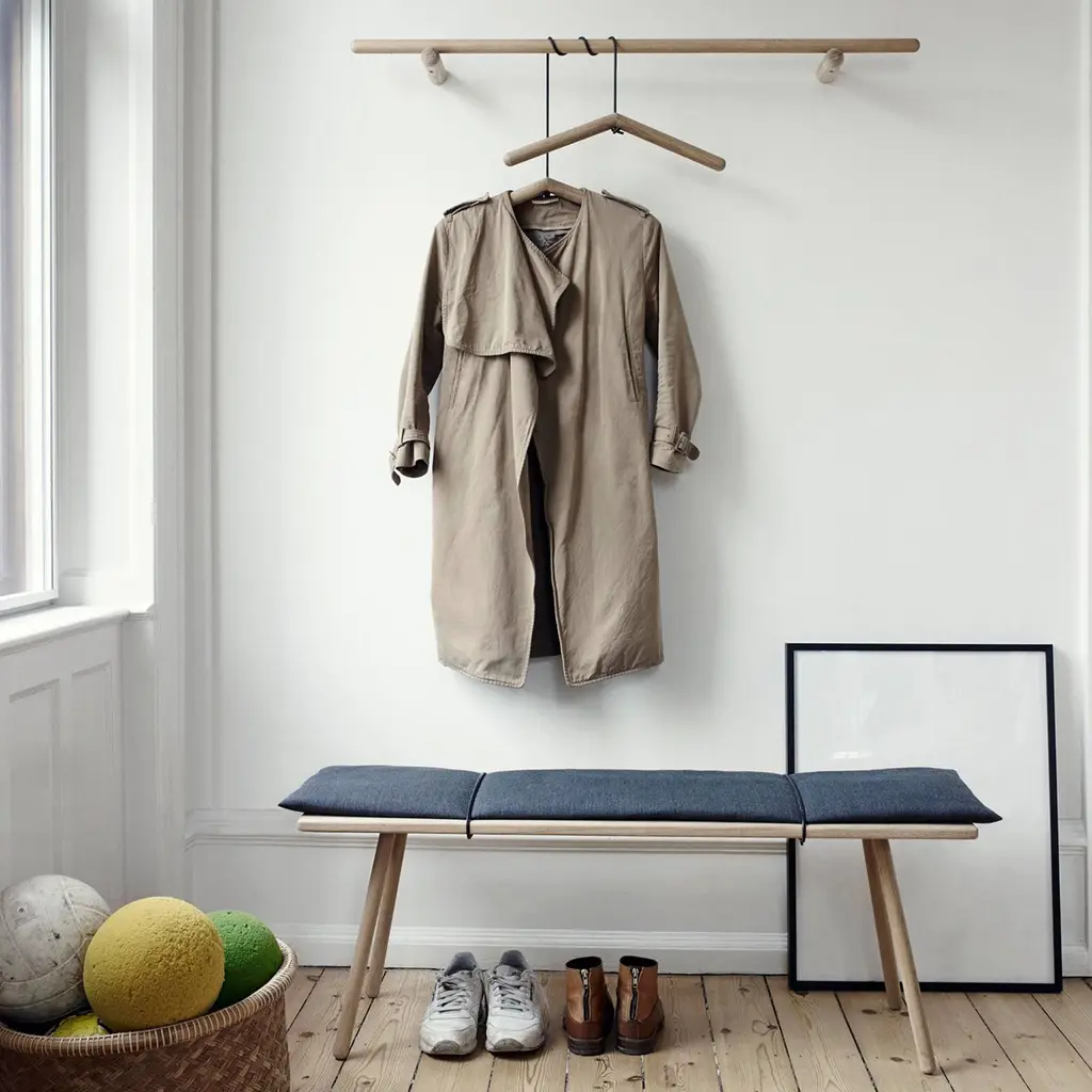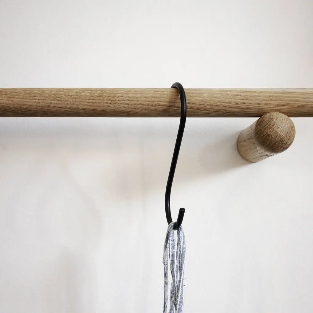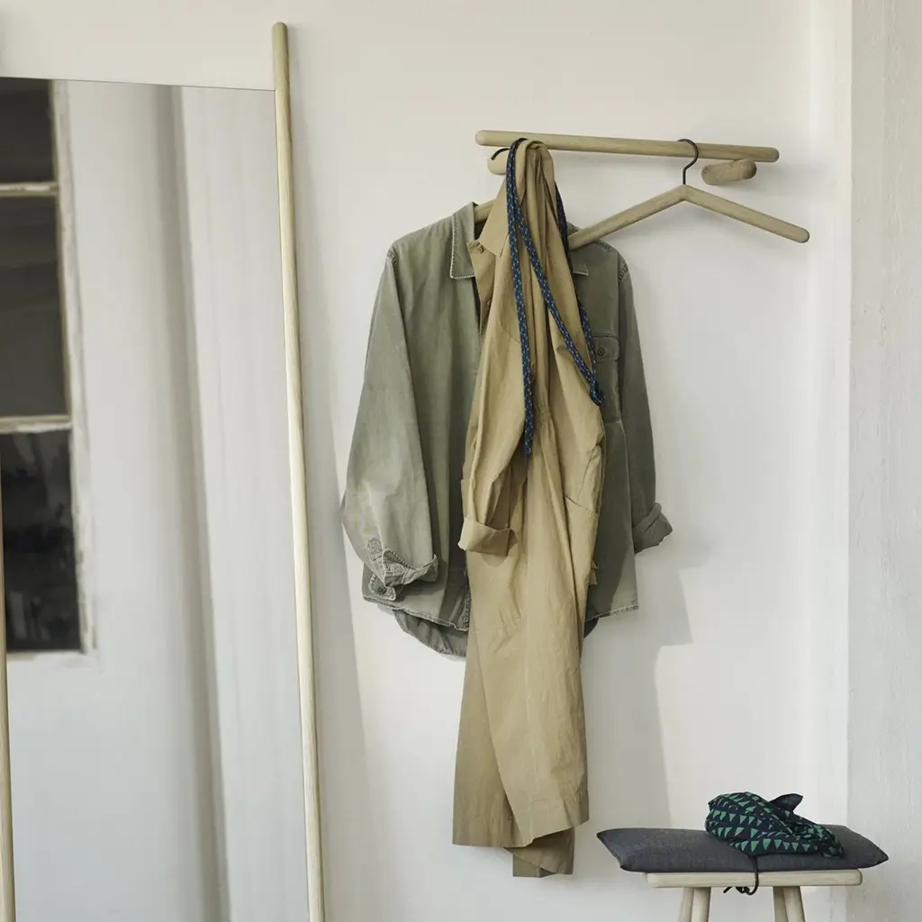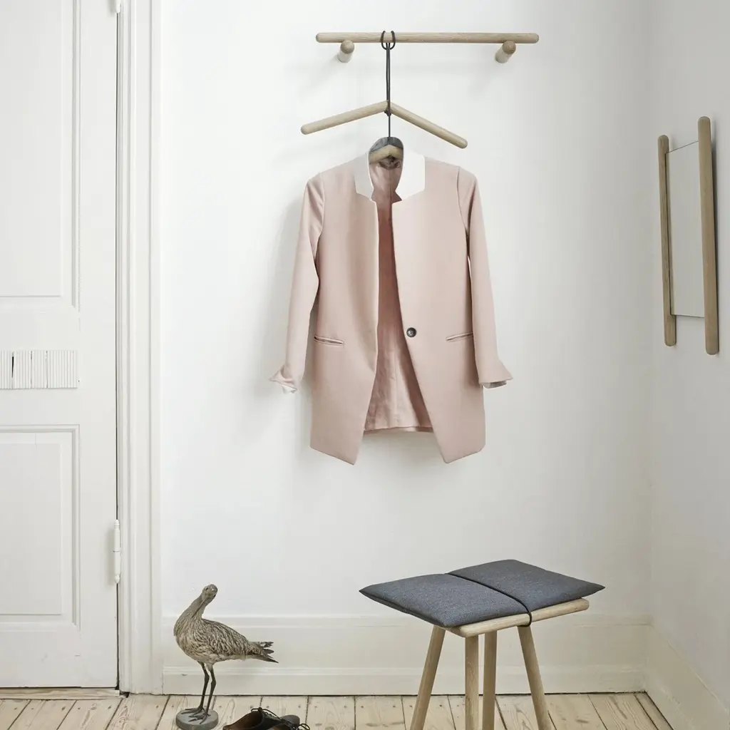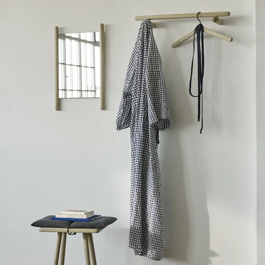 Chris Liljenberg Halstrøm’s utterly simple coat rack is actually a sophisticated take on both Nordic and Japanese elements of style. Georg takes form with an elegant construction of 3 slender wooden poles—a pair employed as supports and a longer one to hold hooks and hangers. In a choice of sizes, the rack is fashioned from FSC-certified oak and comes in pale natural finish or painted black.