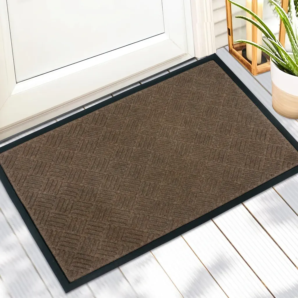Details:Indoor/Outdoor durability Recycled Polyester and Rubber mat. A decorative diamond motif. Perfect for a variety of spaces such as your porch, deck, patio, indoor doorway or balcony. Easily cleaned by shaking, vacuuming or wiping. Features:• Made: Front-Recycled Polyester and Rubber. Back-100% Rubber• 3.15-inch thickness• Black• Not reversible• Machine-made• Rubber Backing• Endures high traffic environments with ease• Diamond design• Contemporary style• Shake, vacuum or wipe off any excess dirt• Measures 24 inches wide x 36 inches long