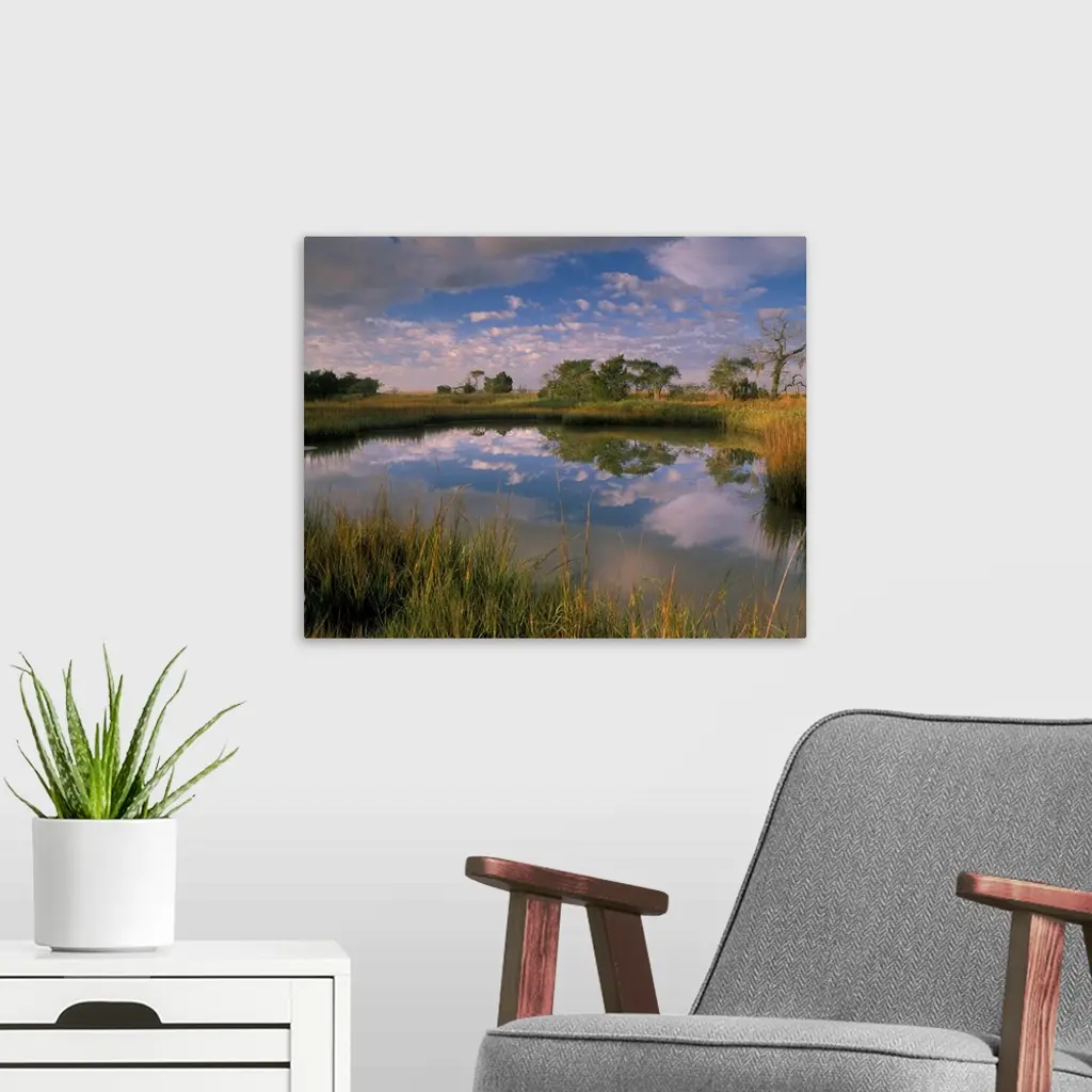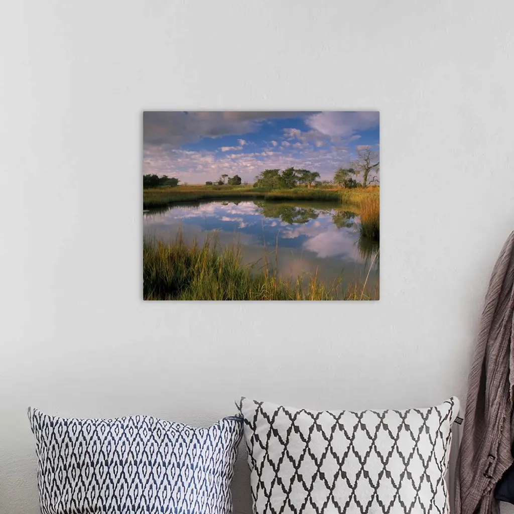 Georgia Tybee Island, Reflection Of Clouds On Tidal Pond In Morning Light