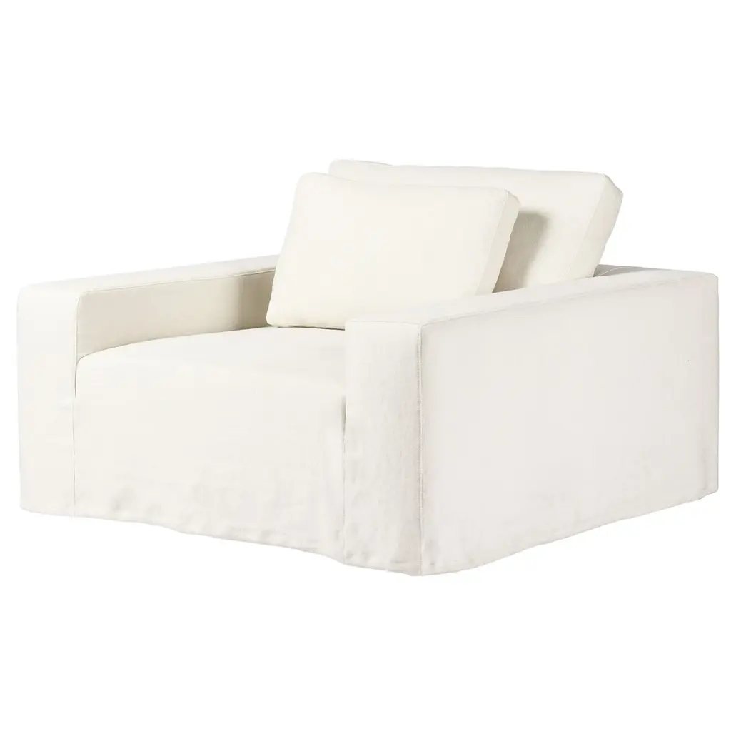 Modules of different shapes and particular corner elements of the LOLL sofa family allow you to create ever new configurations. A proposal that tells a story of contemporary comfort, made special by the attention to detail, the quality of the materials and the uniqueness of the craftsmanship, such as the profile of the sofas underlined by the characteristic sew/cut seam which, like a light line drawn by hand, follows the essential geometries and soft lines of the collection. The solid wood structure with polyurethane foam shell is combined with large seat and back cushions made with a soft layer of channelled goose down, recovering the traditional technique of using pocket springs in the seat cushions for enhanced comfort. In all its versions, the covers of the LOLL collection are completely and easily removable.Modular corner element, upholstered with polyurethane foams, seat and back cushions in dacron and down, removable covers.Additional Information:Material: Upholstery, foamUpholstery: White Linen Cat. CDimension: 105 W x 105 D x 78 H cmSeat height: 45 cmAvailable in other upholstery options: Cat. I, Cat. H, Cat. B, Cat. D, Cat. EAvailable in other structural optionsQuick Ship: Loll 20 / 21 / 22 with removable cover in lino bianco. Available with shipping the week after the order receipt, upon confirmation of availability.