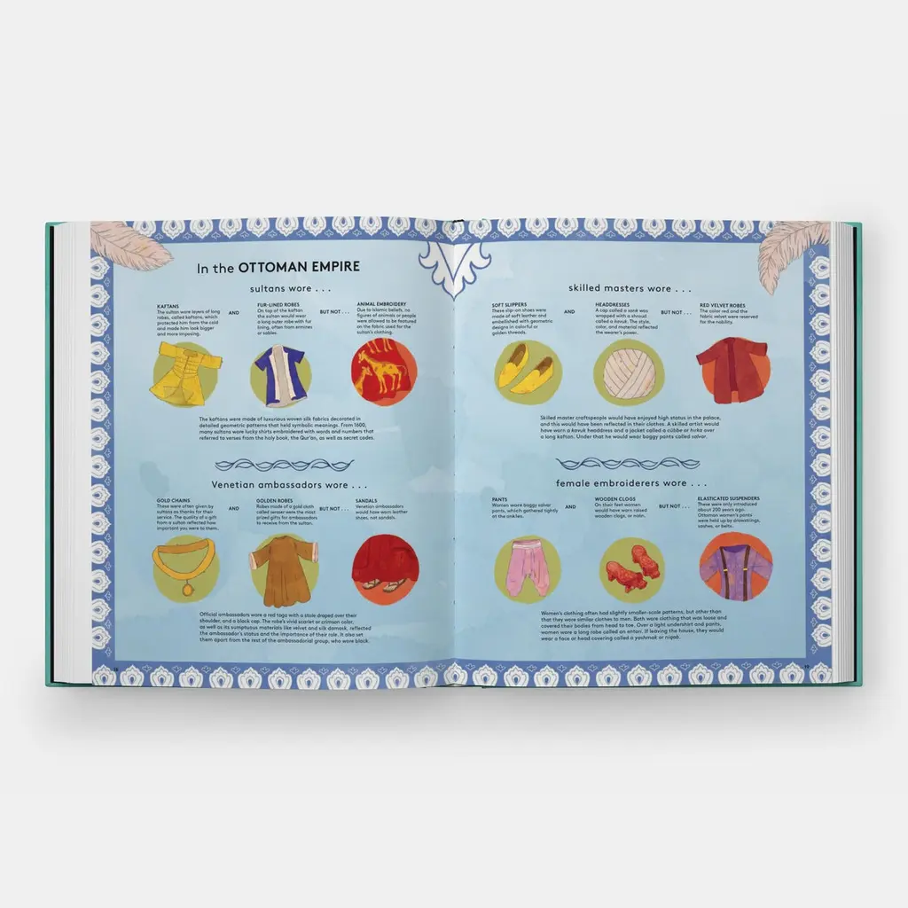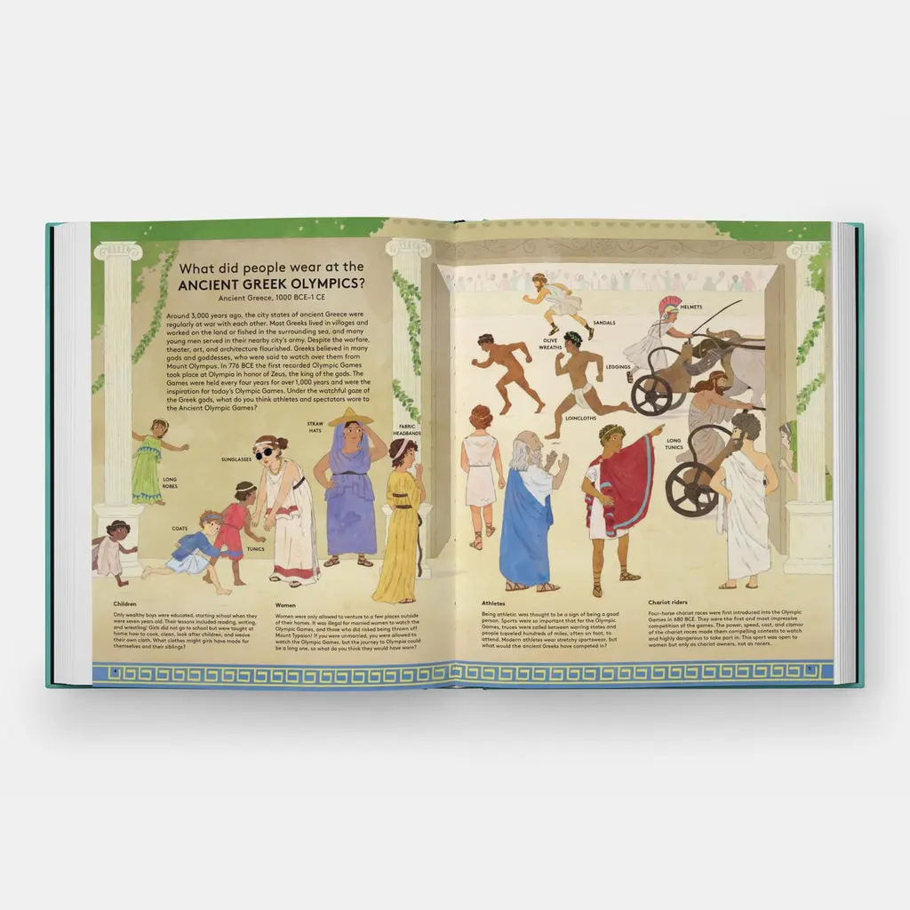 An illustrated, interactive introduction to fashion history for children, revealing the fascinating connections between clothing and cultureIn this first book of fashion history for children, young readers will discover fabulous clothing and fashion trends worn by people past and present. Packed with extraordinary facts and eye-catching illustrations, the book reveals through a fun guessing game format why Elizabethan men stuffed their stockings, only certain people were allowed to wear red in the Ottoman Empire, and Marie Antoinette once wore a wig with a toy ship in it.Featuring 10 high-interest periods including the Ancient Greeks, Early Iron Age Denmark, Tang Dynasty China, Elizabethan England, the French Revolution, Edo Era Japan, 1920s USA, and 1950s Ghana, Get Dressed! goes back in time to capture the fun of fashions’ past, from the perfectly practical to the potentially perilous.The book also includes a forward-looking spread on fashion’s future, featuring designers known for their ground-breaking and sustainable approaches, such as Stella McCartney, Sami Miro, Tommy Hilfiger, and Vivienne Westwood.Ages 5-8