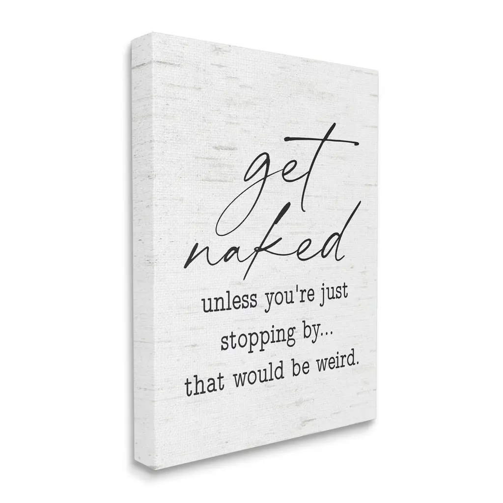 Get Naked Just Kidding Black And White Curly Script Cursive, Canvas, 11"x14"