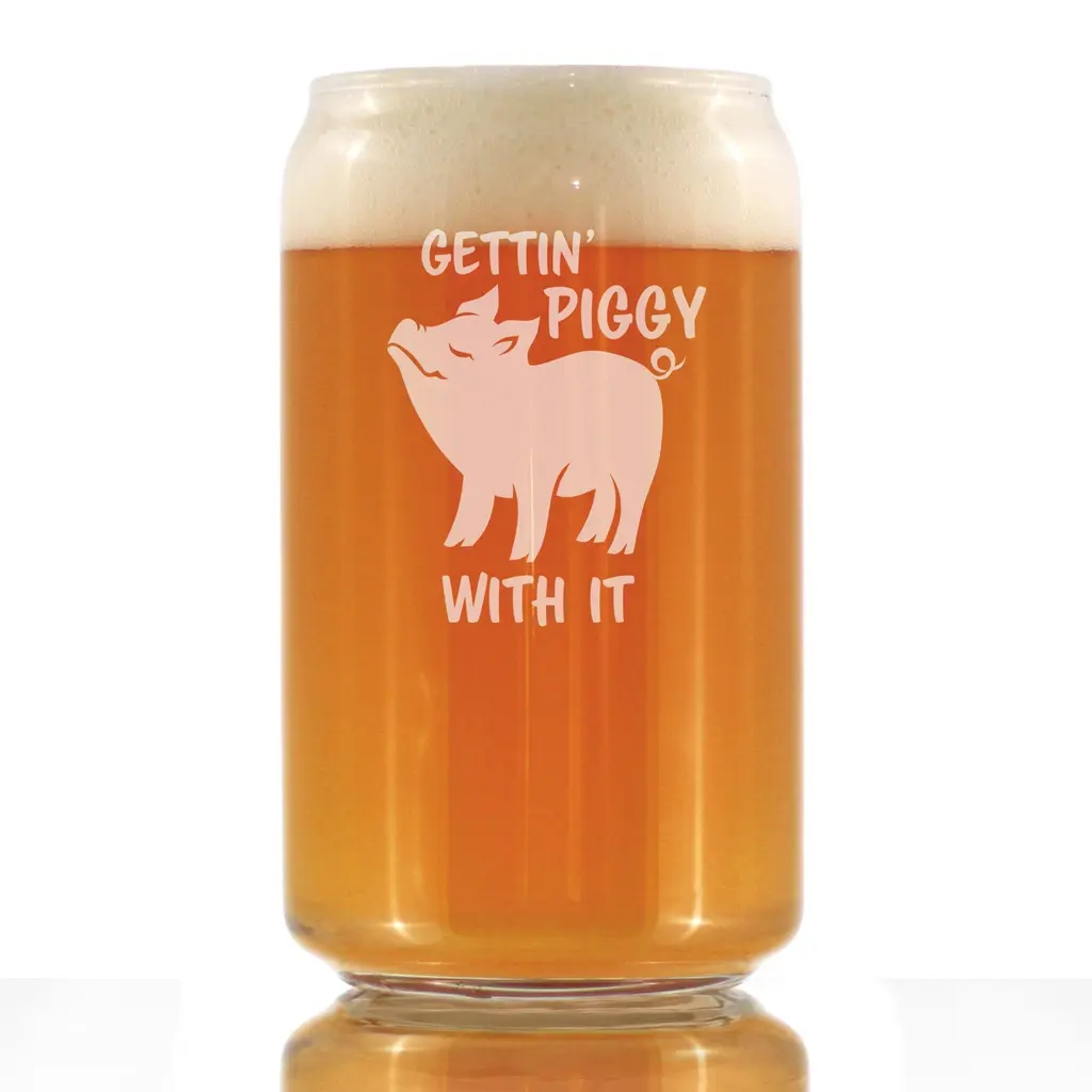 Gettin Piggy - Beer Can Pint Glass - Funny Pig Gifts & Decor - 16 Ounce - Clear