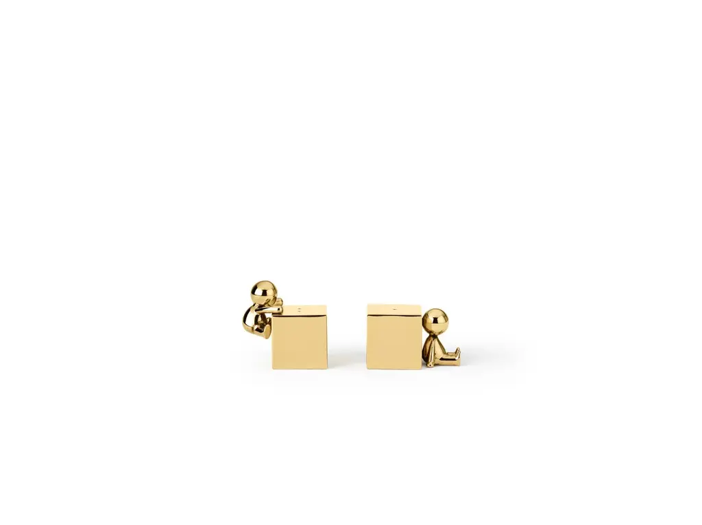 Salt and pepper in stainless steel with PVD treatmentOmini is a family of products that plays on the inclusion and the relationship between the human figure with a series of monolithic objects from geometric and Minimalist design. Small Lilliputians attack and animate the pure forms of objects, referring to the natural-artificial and abstract-figurative contradictions that have always characterized the relationship between man and the object.Material:Stainless steel.