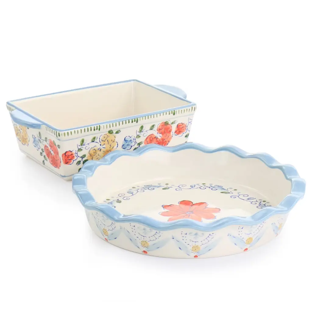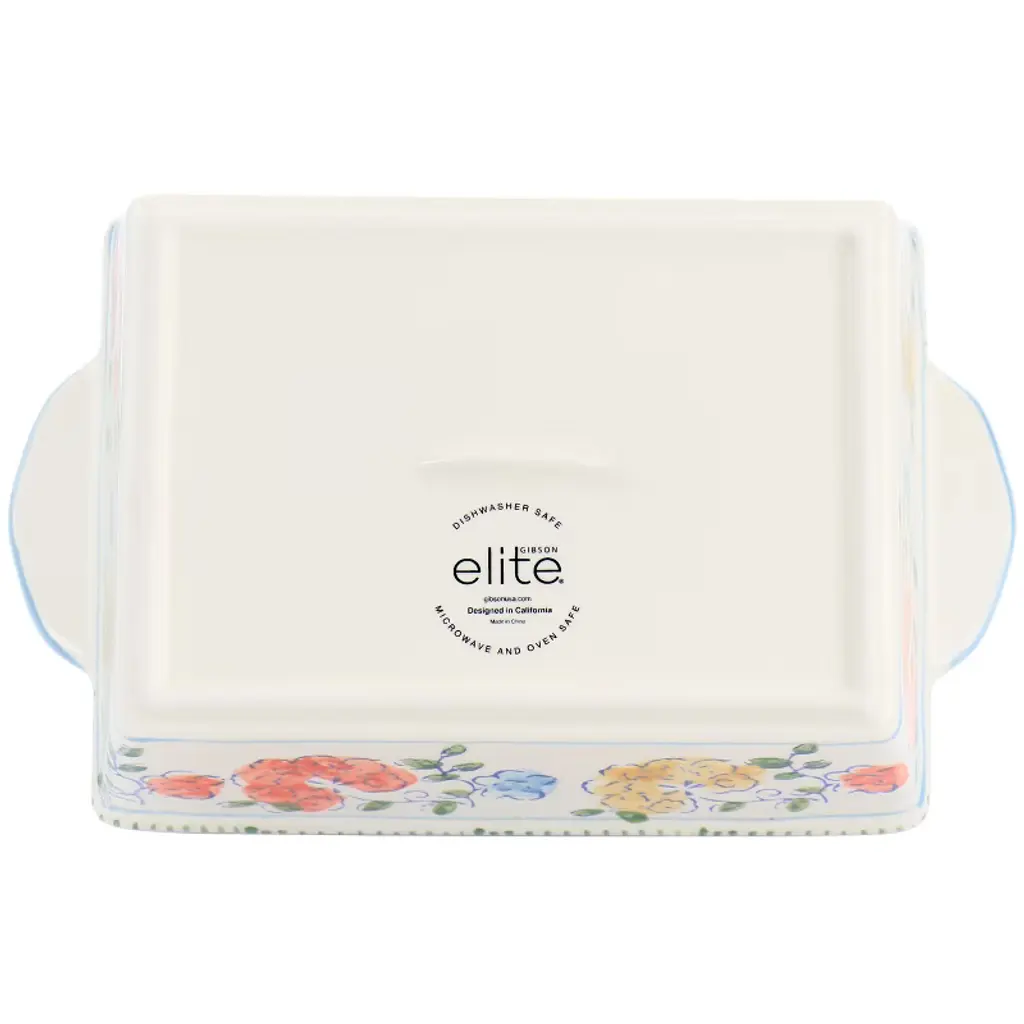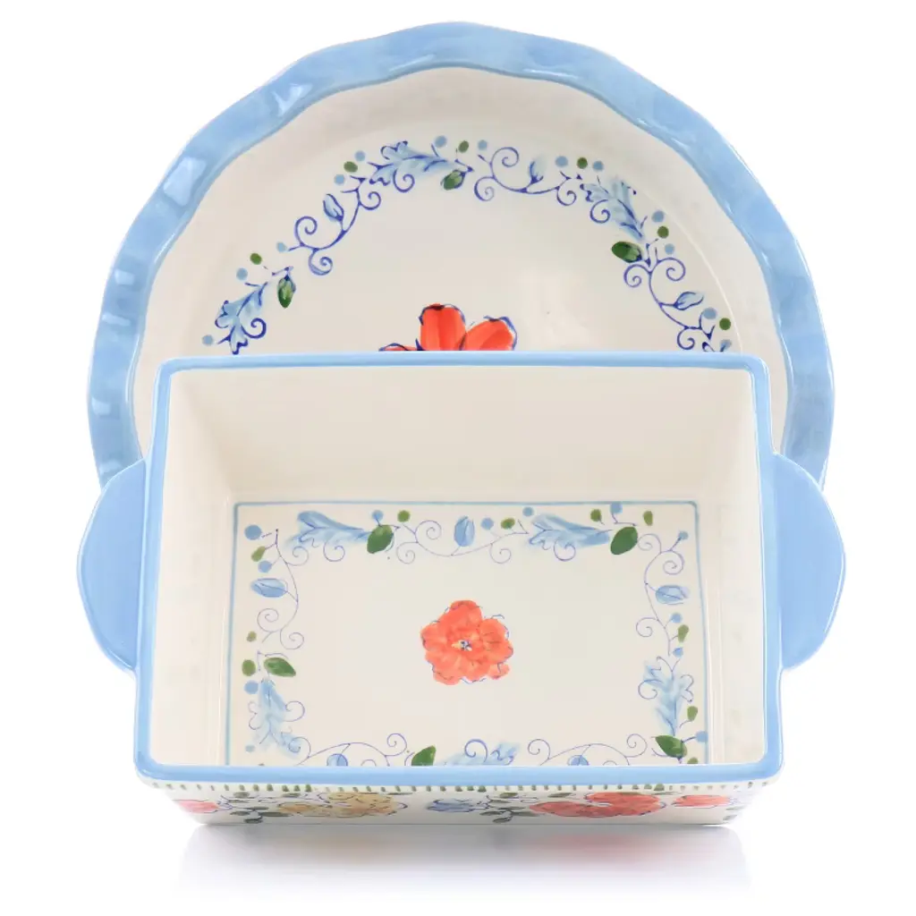 Gibson Elite Anaya 2 Piece Stoneware Bakeware Set With Hand Painted Designs