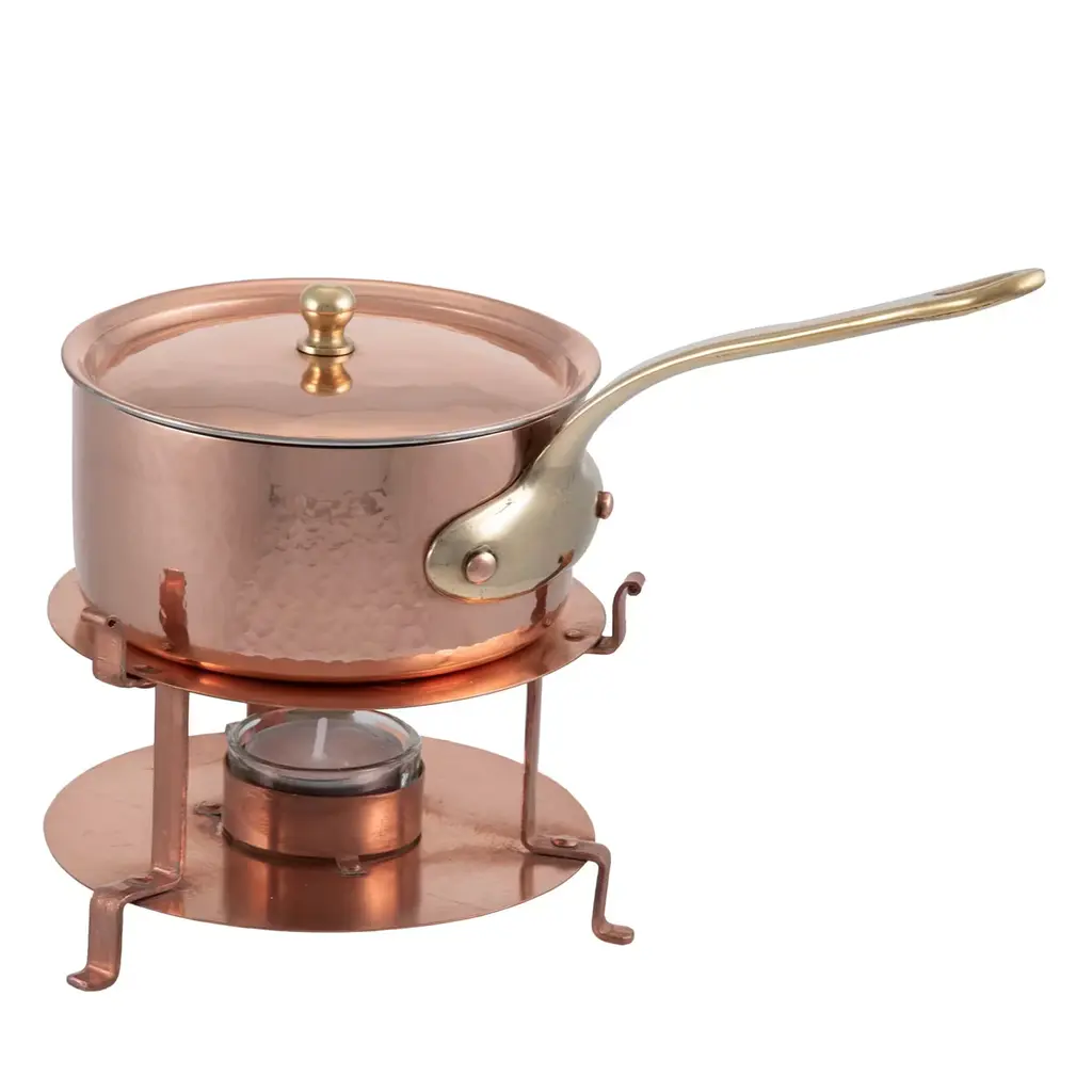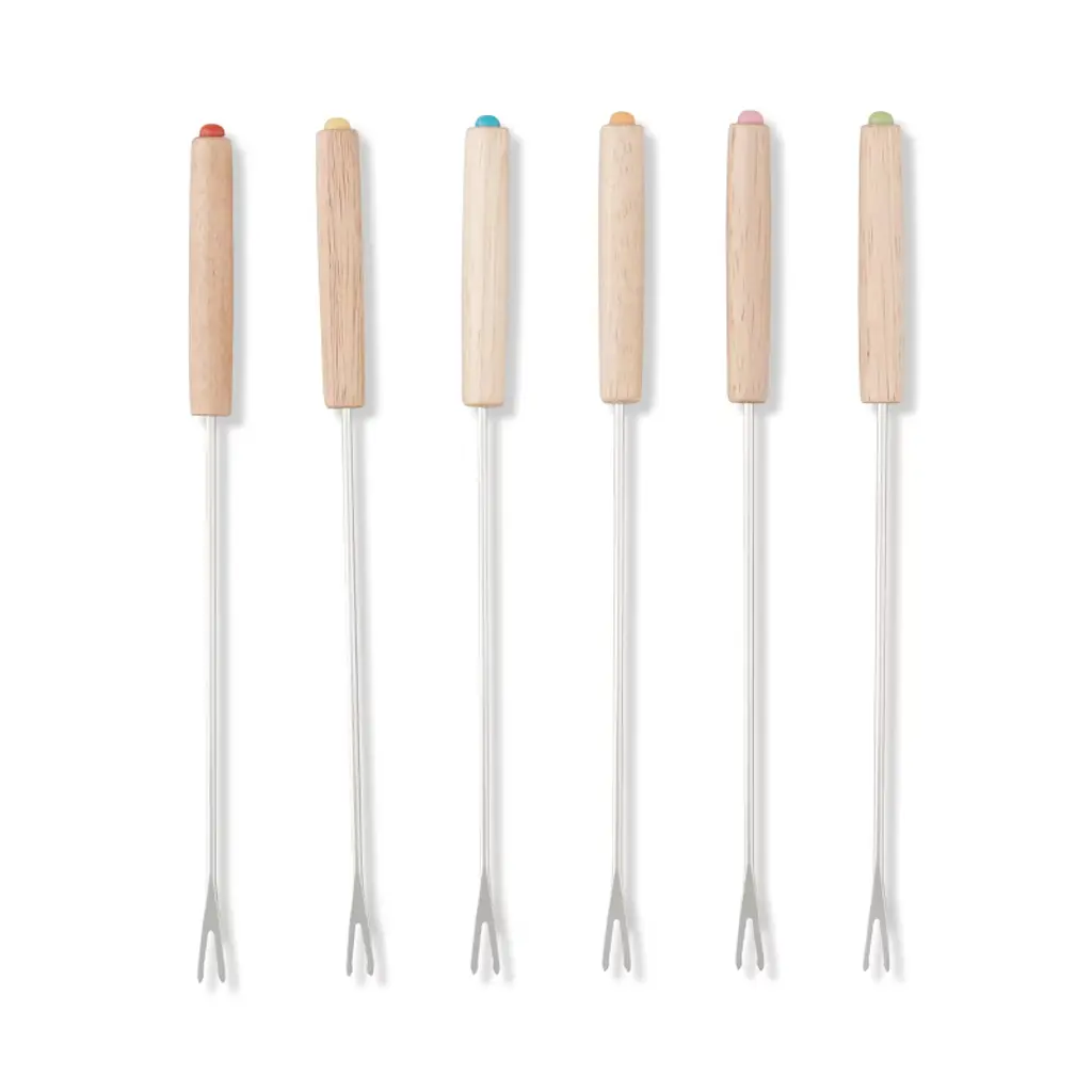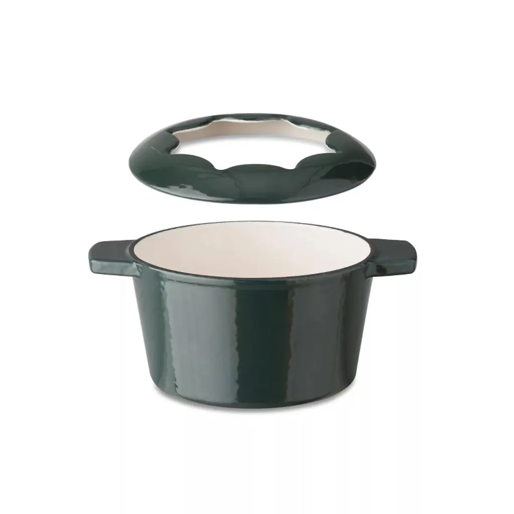 Bring the delicious and classy fondue experience right to your home with this Our Table 13 Piece Enameled Cast Iron Fondue Pot Set. This set has everything you need including cast iron pot with lid, cast iron stand, 6 color-coded forks, 3 piece chrome burner, and snuffer. Durable cast iron construction allows for even heating and optimal heat retention, and an enameled interior allows for super easy clean up. The pot is even oven safe up to 500° F for more cooking options. With 6 color coded forks, your friends and family will have a great time with this fondue set perfect for cheese, chocolate, and more!