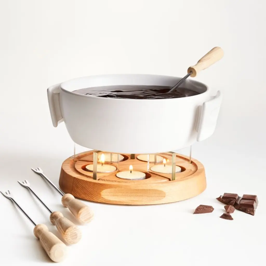 Gibson Our Table 13 Piece Enameled Cast Iron Fondue Pot Set In Sycamore