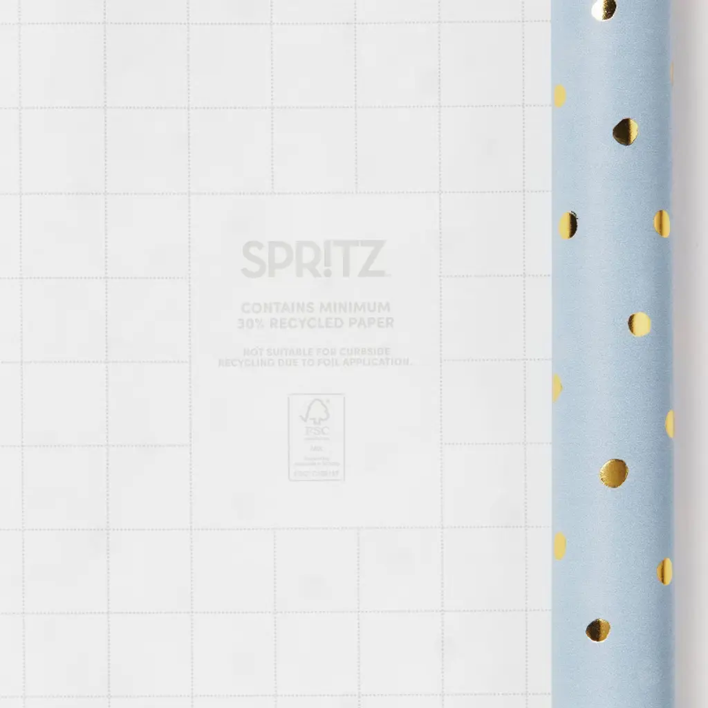 Gift Wrap Roll Blue With Gold Foil Dots - Spritz™
