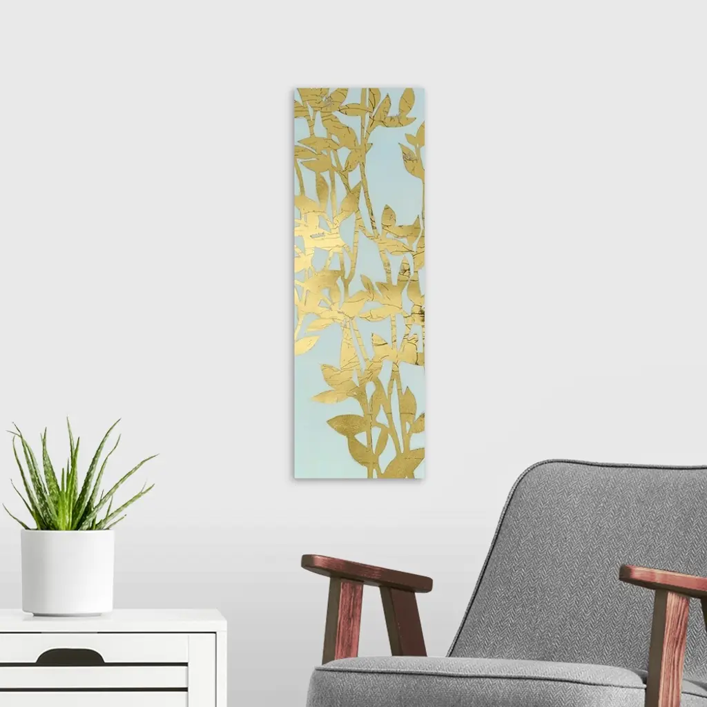 Gilded Eucalyptus On Blue I wall art for home and office decor. Discover canvas art prints, photos, mural, big canvas art and framed wall art in GreatBigCanvas.com's varied collections.