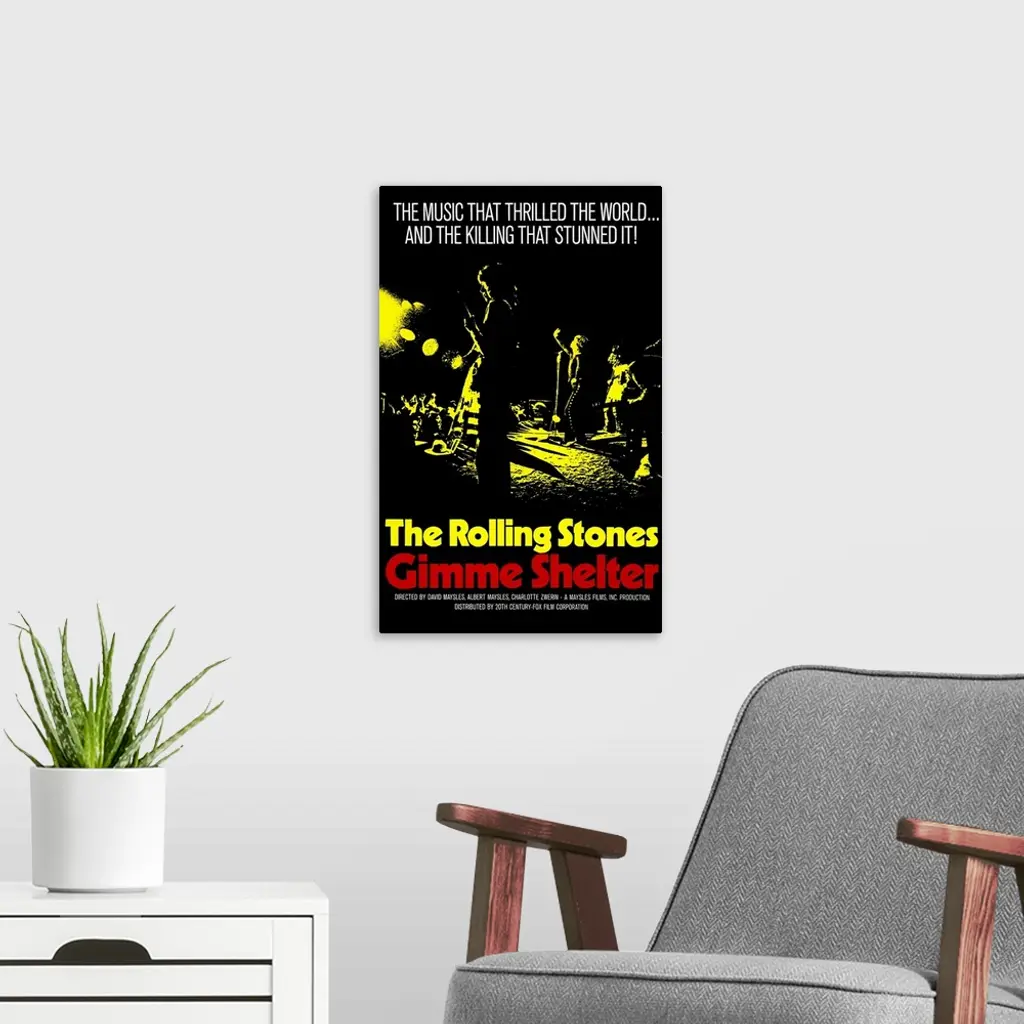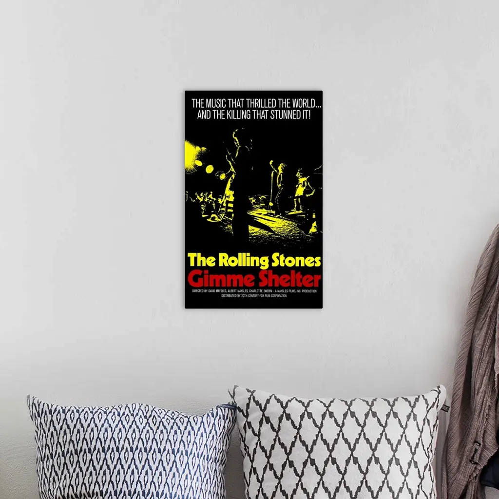 Vintage poster advertising The Rolling Stones "Gimme Shelter" tour with silhouetted picture of the band on stage.