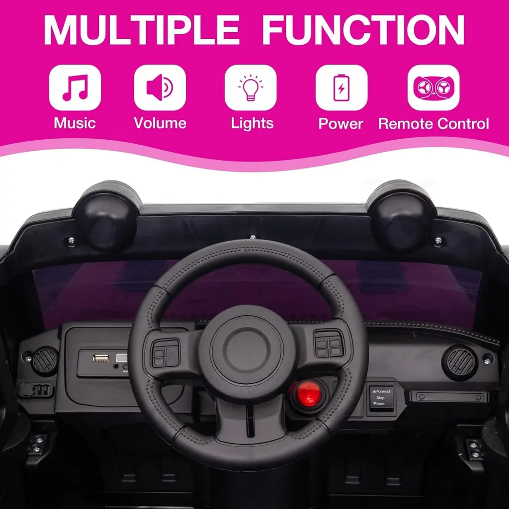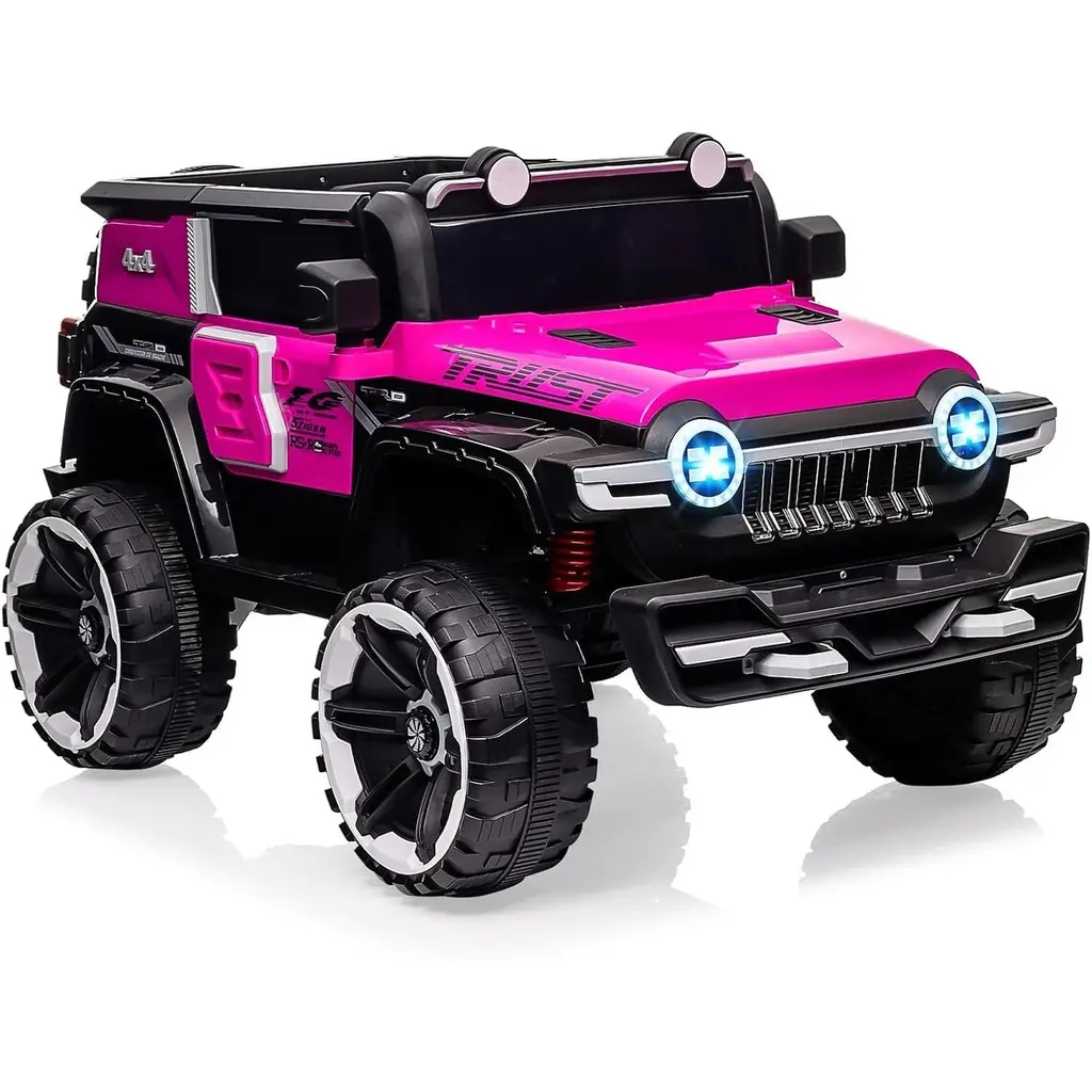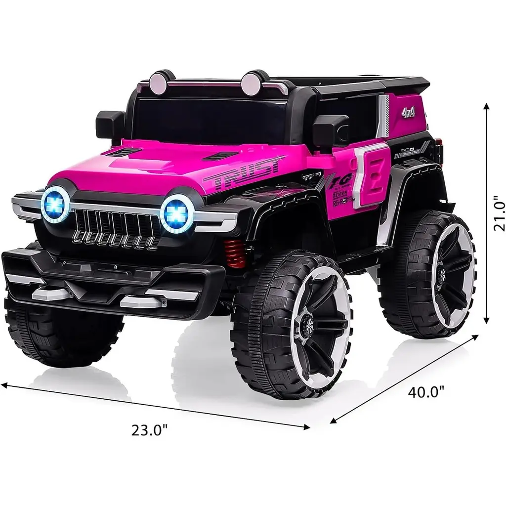 【Powerful Dual Motor】Experience the thrill with our 2 Seater Kids Ride On Truck, featuring a robust 25W Dual Motor for enhanced performance. This 12V Battery Powered Off-Road Vehicle ensures your child enjoys a powerful and exhilarating ride on any terrain.【Smooth Ride with Spring Suspension】Equipped with advanced Spring Suspension, this Kids Ride On Truck offers a smooth and comfortable driving experience. The suspension system effectively reduces bumps and vibrations, providing a realistic off-road adventure.【Parental Remote Control】Safety first! Our ride-on truck comes with a Remote Control feature, allowing parents to oversee and control the vehicle's direction and speed. This ensures maximum safety while fostering trust and enjoyment between parents and children.【Three Adjustable Speeds】Tailor the driving experience with 3 Speeds settings. Whether your child is a beginner or an experienced driver, this feature allows for a customizable and safe ride, making it perfect for kids of different ages.【Fun and Functional Features】This ride-on truck is packed with exciting features including LED Lights, Music, and a Decorative Spare Tire. The built-in music player with USB interface lets your child enjoy their favorite tunes, making every ride a fun-filled adventure.
