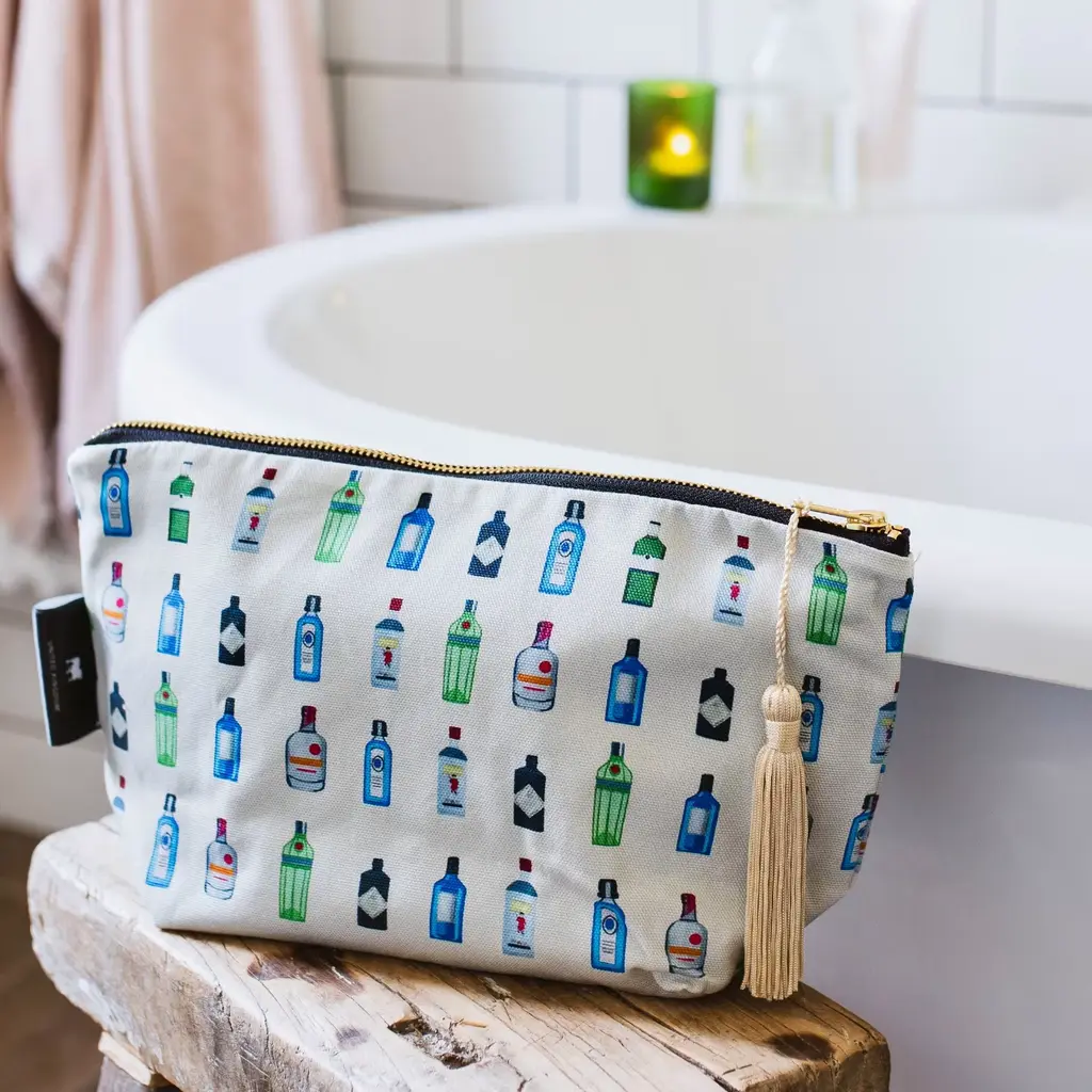 Refresh your everyday routine with the Gin Makeup Bag, featuring Jessica’s hand-painted design inspired by her original oil painting.Crafted from 100% cotton with a water-resistant lining, it keeps your essentials neatly organised, whether at home or away.Finished with a silk tassel and made from a durable, heavyweight 100% 1/2 Panama Cotton fabric, it’s designed to be both practical and enduring. With space for makeup, brushes, and travel favourites, it’s the perfect balance of function and style.A thoughtful gift for any gin lover - or a treat for yourself.