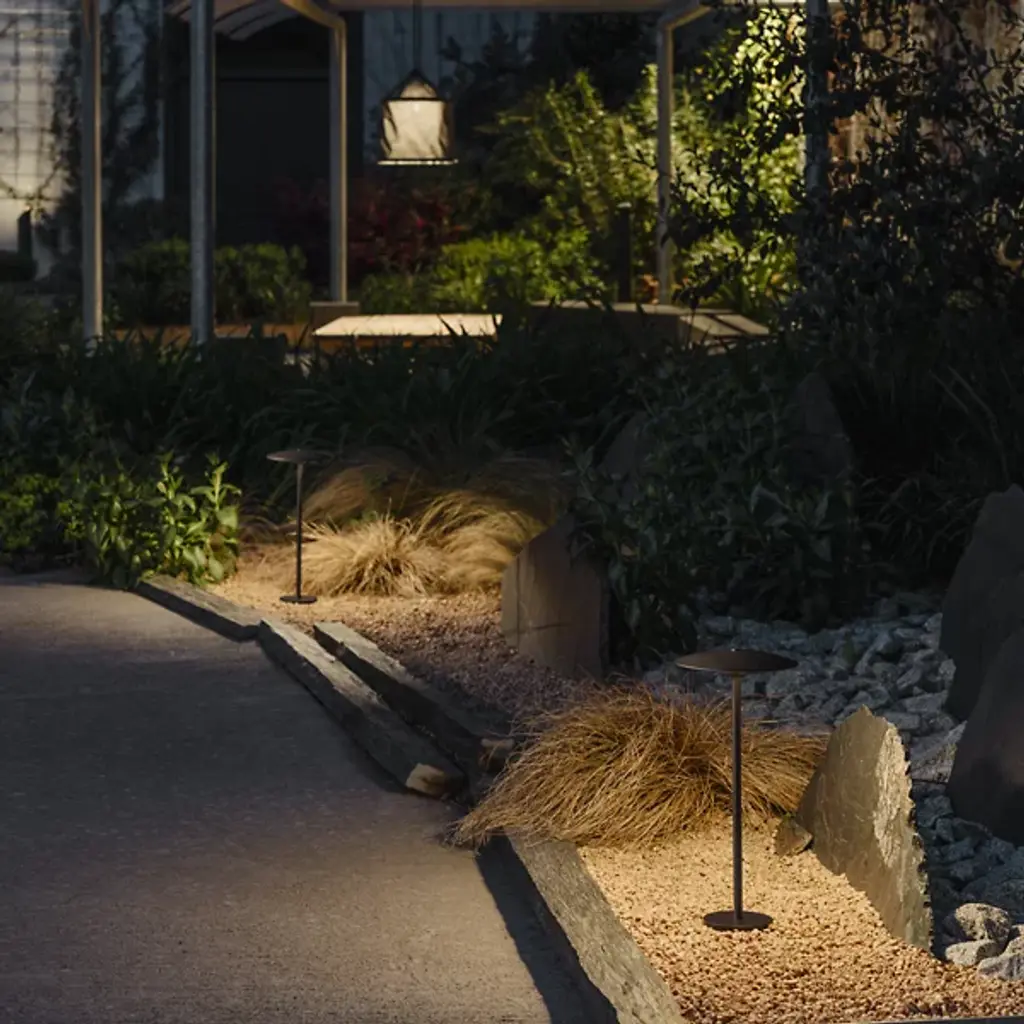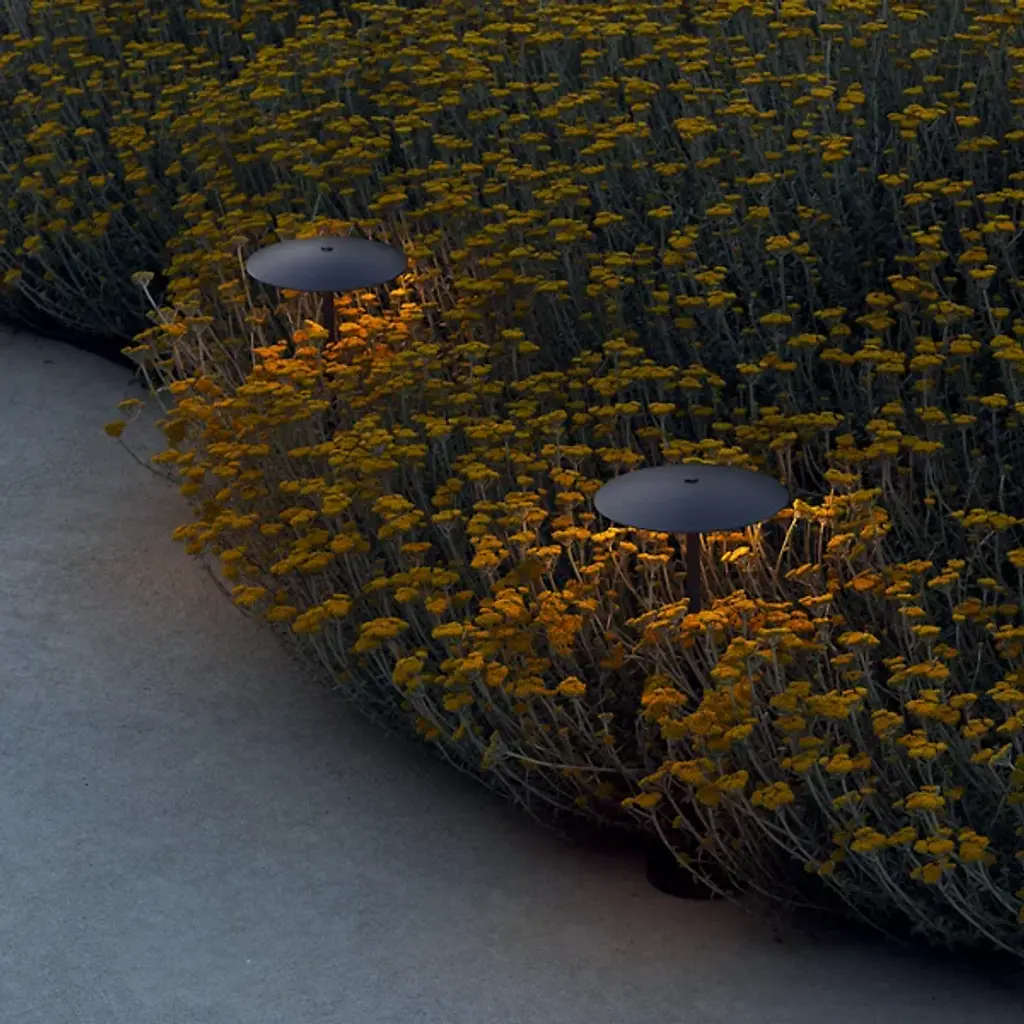 Explore the outdoor adaptation of the Ginger collection with the Ginger Outdoor LED Bollard Light by Marset. An unforgettable and elegant design by Joan Gaspar, this contemporary light ascends from a single stem, secreting strong and wet-rated LED lamping beneath a dish-shaped shade. The post can be discreetly buried in dirt or gravel. Ideal for lighting pathways, gardens, terraces, and walls, it seamlessly integrates with natural surroundings, extending a radiant ambiance to outdoor spaces, offering both functionality and a touch of modern design.