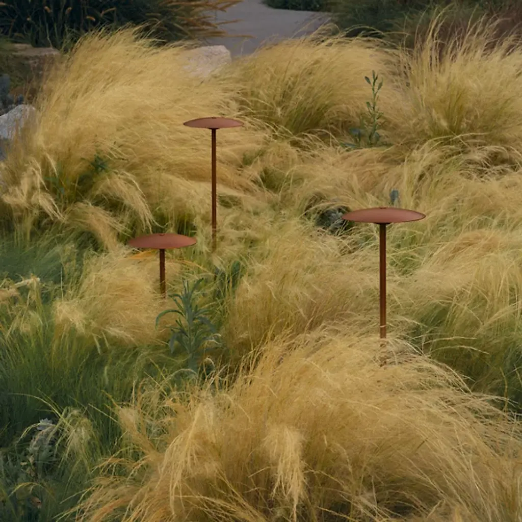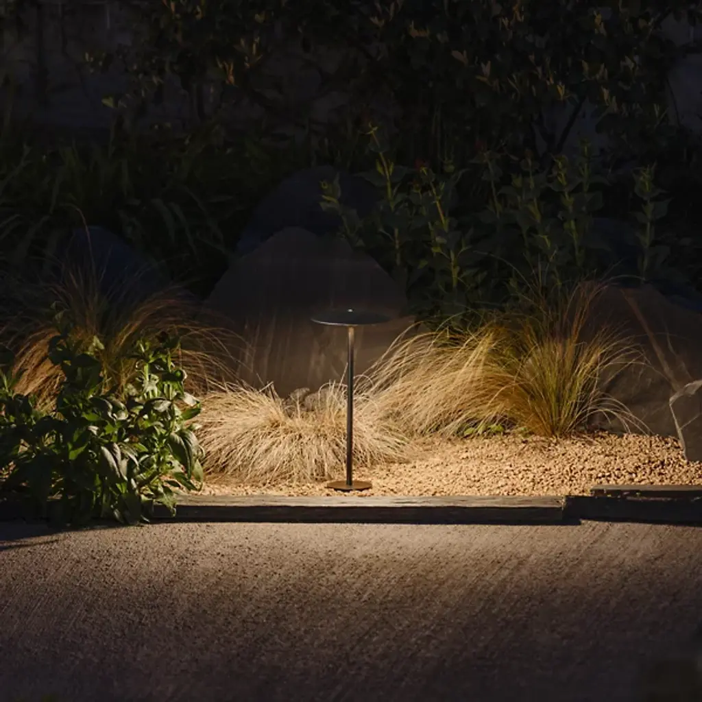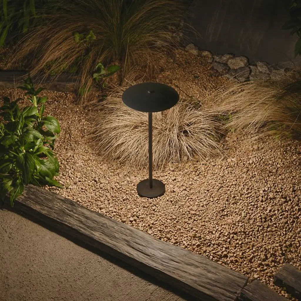 Explore the outdoor adaptation of the Ginger collection with the Ginger Outdoor LED Bollard Light by Marset. An unforgettable and elegant design by Joan Gaspar, this contemporary light ascends from a single stem, secreting strong and wet-rated LED lamping beneath a dish-shaped shade. The post can be discreetly buried in dirt or gravel. Ideal for lighting pathways, gardens, terraces, and walls, it seamlessly integrates with natural surroundings, extending a radiant ambiance to outdoor spaces, offering both functionality and a touch of modern design.