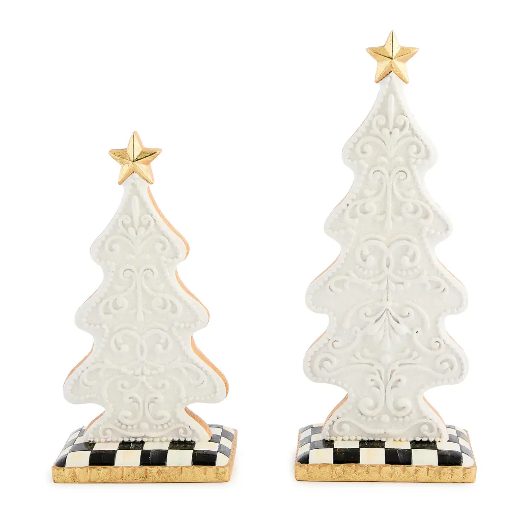 Celebrate the season with the timeless charm of the Gingerbread Small Trees. These iced trees are the sweetest touch to the holiday season, sitting on a base decorated with our signature checks. A wonderful accent for your holiday table or entryway.