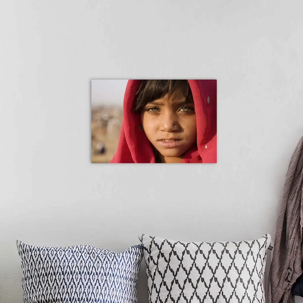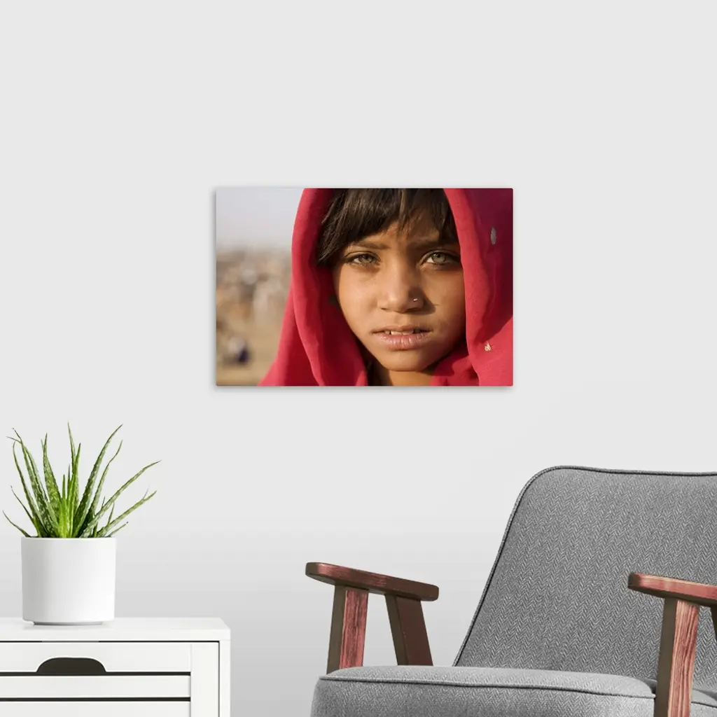 Girl with red scarf at the Pushkar camel festival, Rajistan, India wall art for home and office decor. Discover canvas art prints, photos, mural, big canvas art and framed wall art in GreatBigCanvas.com's varied collections.