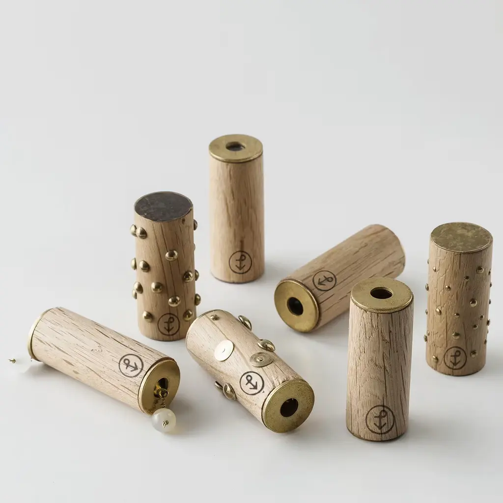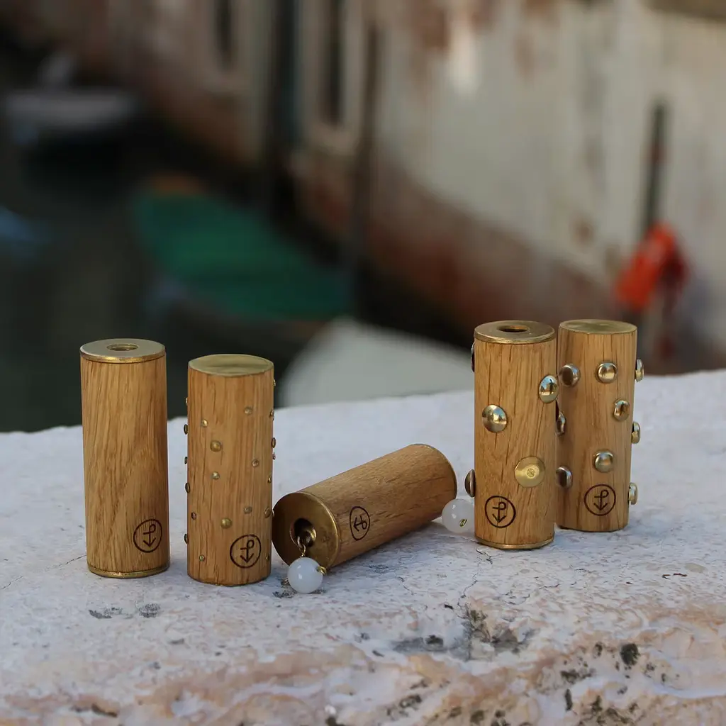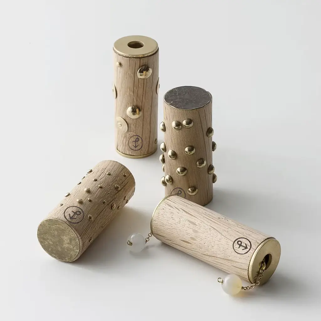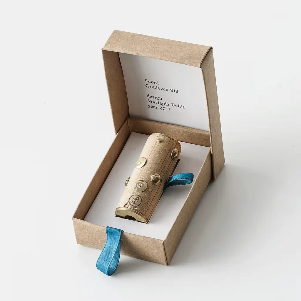 A small sound maker designed by Mariapia Bellis makes slight, interesting noises. It is made in briccola wood perforated by bolts and brass pins with a bell inside. The price includes the engraving of a name (or any other word) on the products. Contact in Customer Care for info.