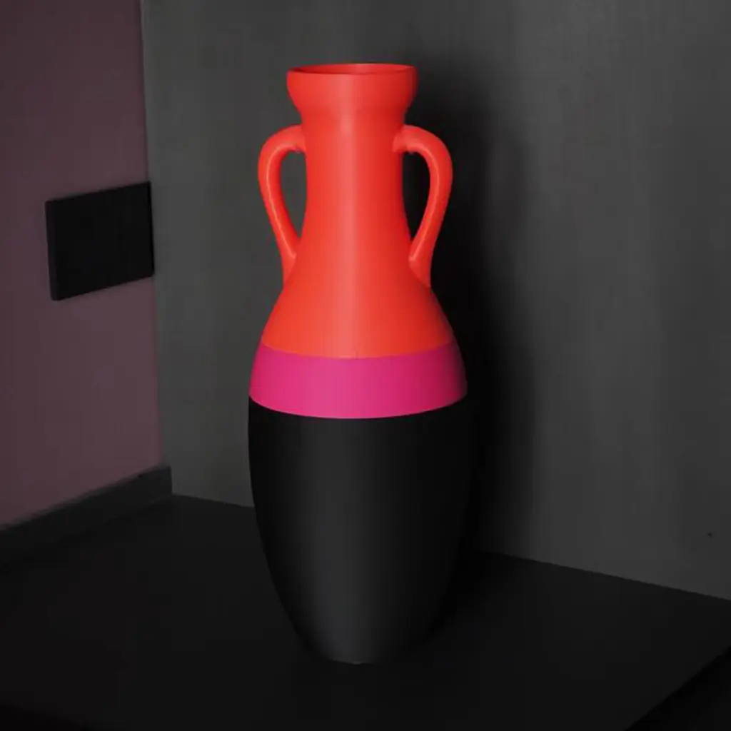 This vase is a pop reinterpretation of the archetypal shape of Roman amphorae. The main inspiration for this object has been Montestaccio's archeological site studied by Heinrich Dressel. The vase is produced with the use of 3D printing and the best quality of PLA (thermoplastic derived from renewable resources, compostable in industrial facilities). The sustainable and elegant vase is the perfect design for a chic enviroment.
