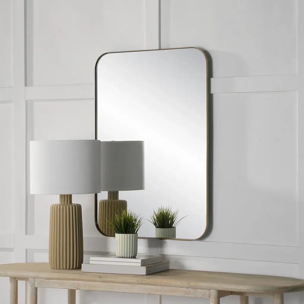 Smooth, elongated lines and a unique structure combine to form a piece built to take it all in. This all-glass standing mirror has a simplistic style allowing it to seamlessly blend in both traditional and modern interiors.Hardware Included: Yes