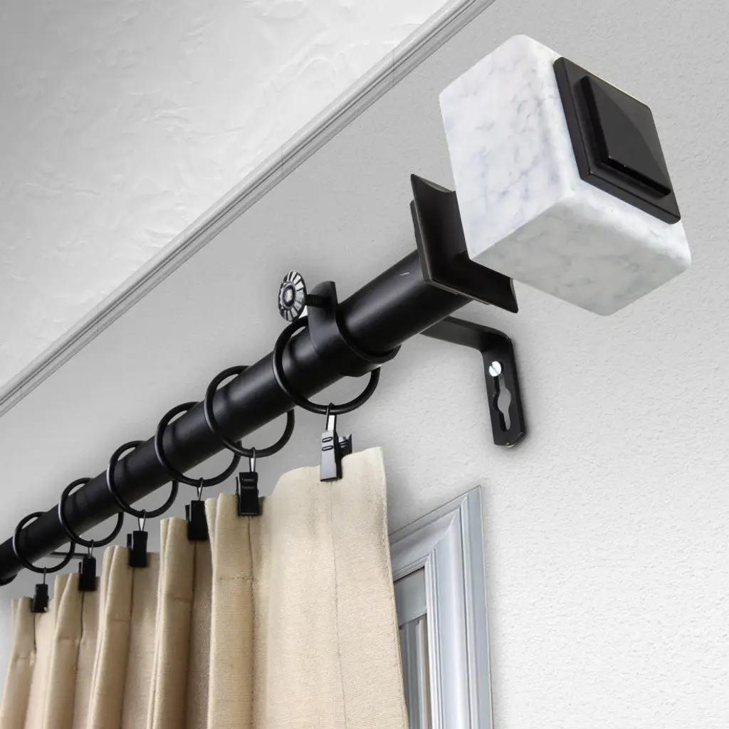 Bring a designer''s touch to your window treatments with the Glacia Rod SetSteel adjustable rod, Outer rod measures 3/4" diameter, inner rod measures 5/8" diameterMounting hardware included:? standard matching brackets that extend from 4" to 5.5" deepFinial size: 1" inch diameter, 3" Length.Assembly required. A screwdriver is needed to install