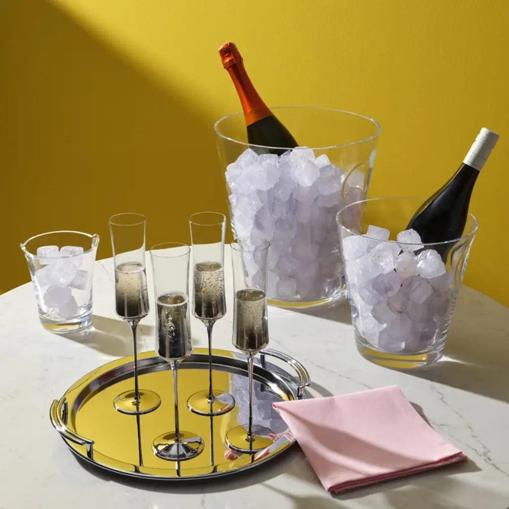 With a strong silhouette that almost defies its delicate crystalline glass composition, takes both functionality and aesthetics into account. Sharp yet comfortable, it presents a pair of elegant hand-pressed dimples that ensure a reliable grip when handling the ice.
