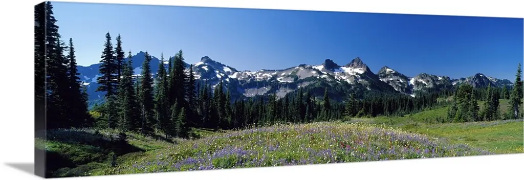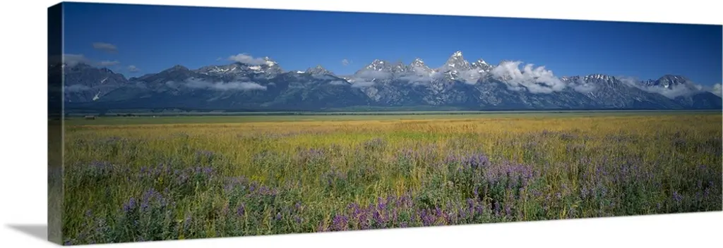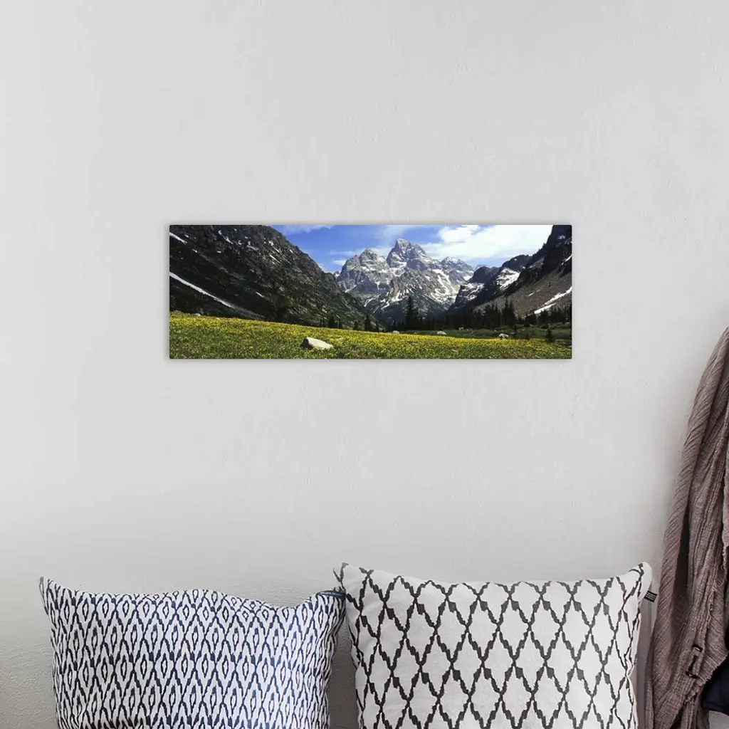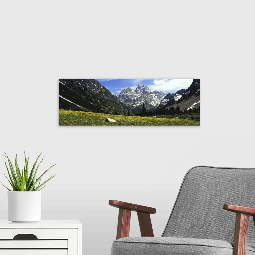 Glacier lilies in a field with mountains in background, Grand Teton National Park, Wyoming wall art for home and office decor. Discover canvas art prints, photos, mural, big canvas art and framed wall art in GreatBigCanvas.com's varied collections.