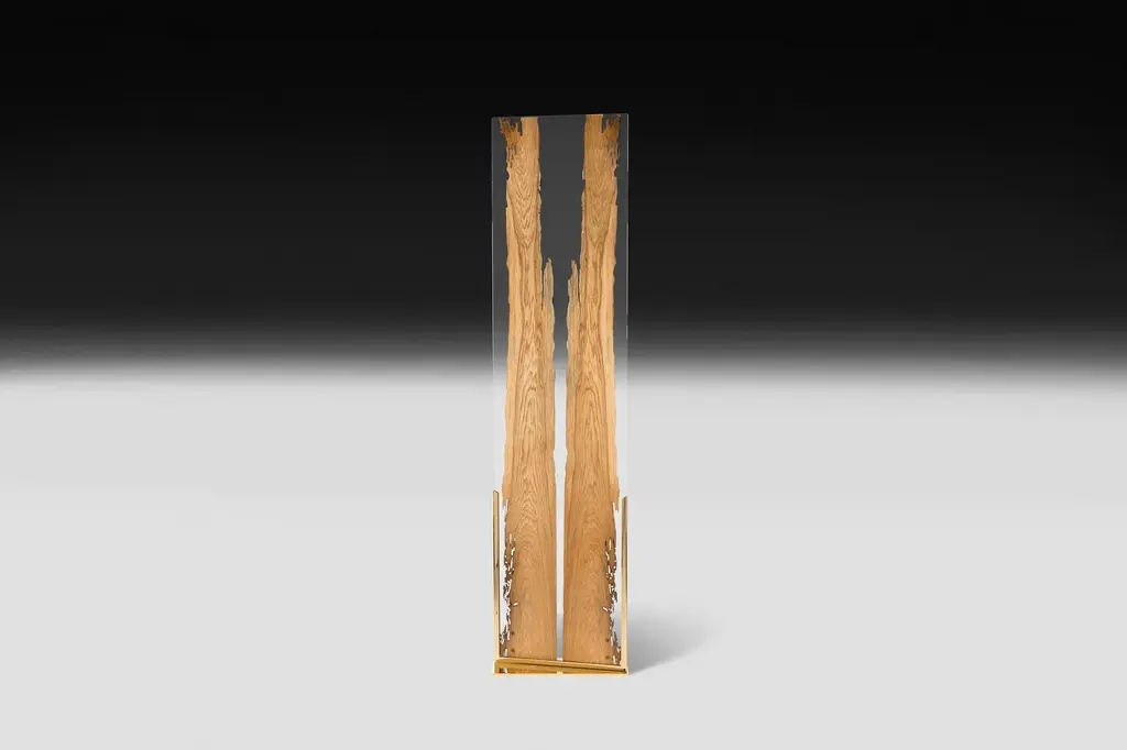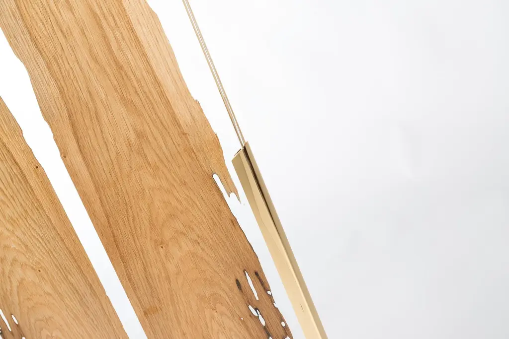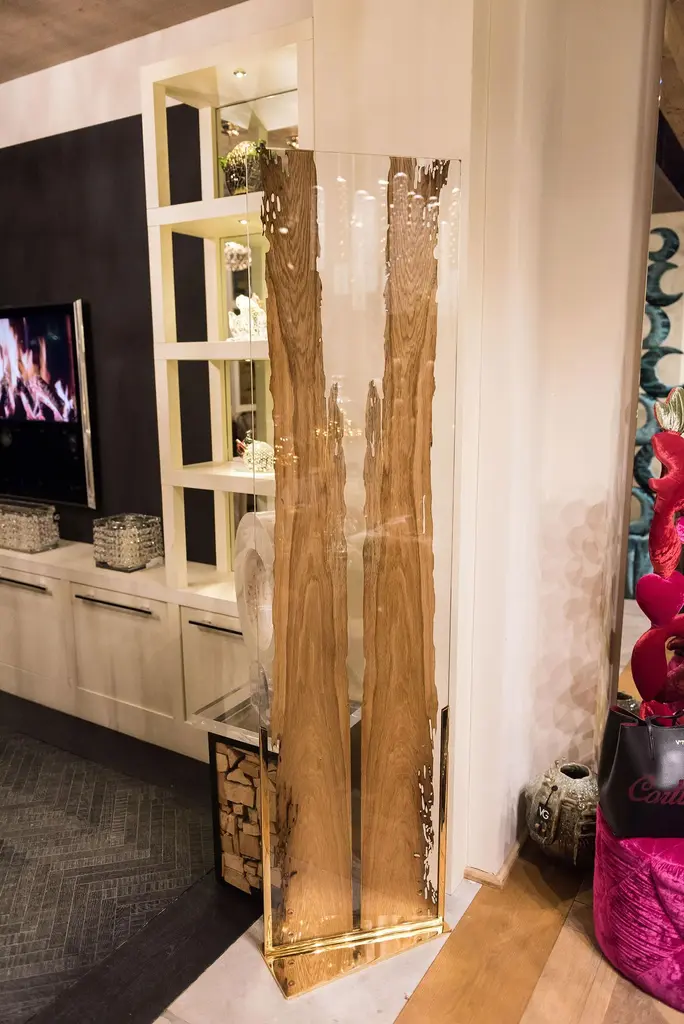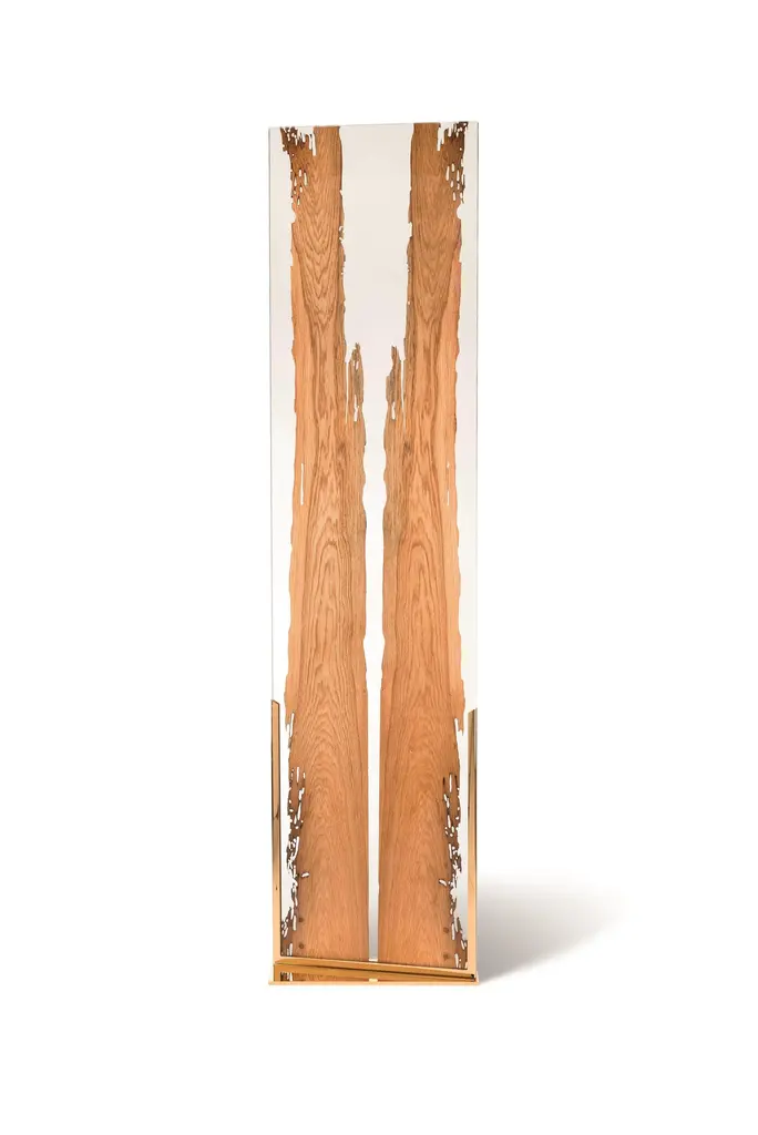 Glass, Oak, & 24k Gold Plated Metal Luxury Privacy Room Divider From Vgnewtrend