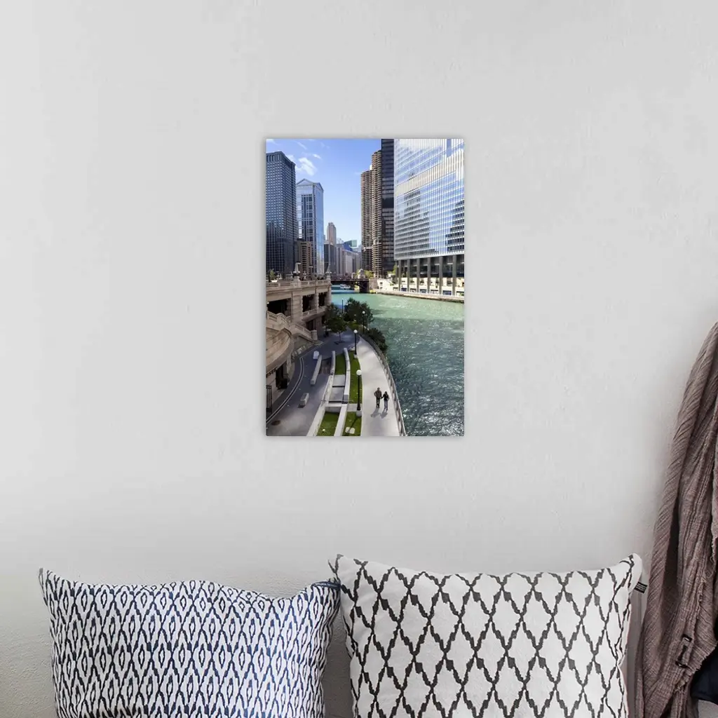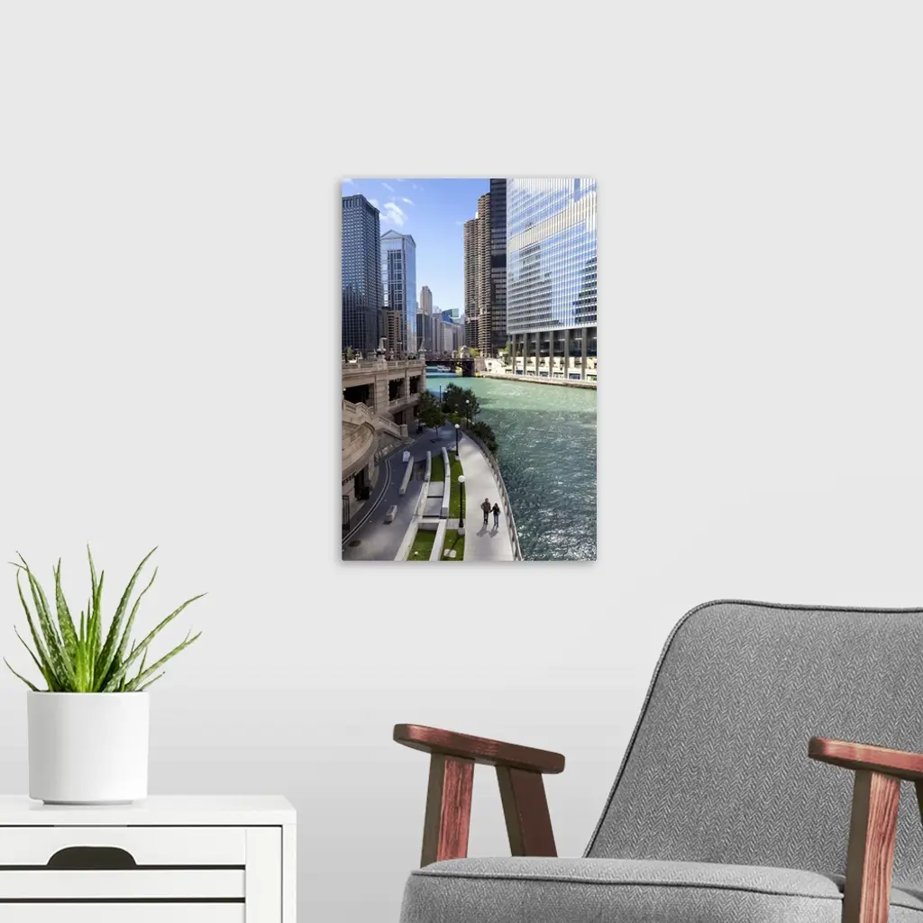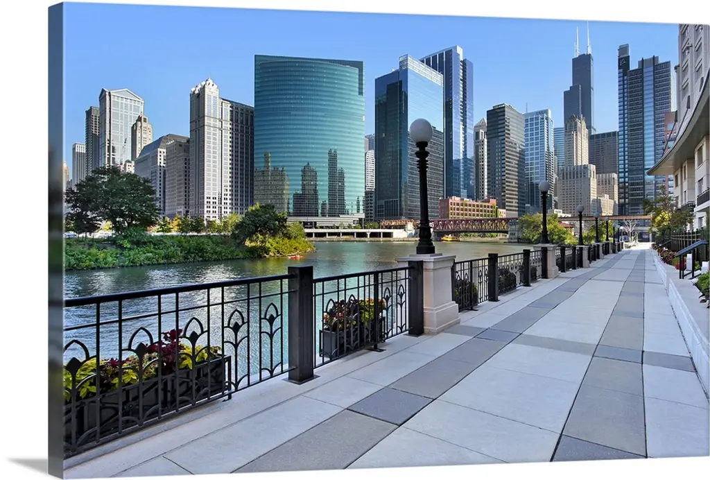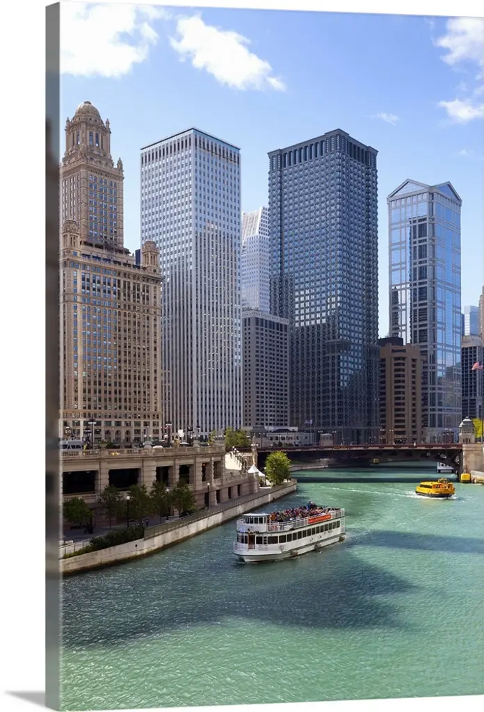 Glass towers along the Chicago River, Chicago, Illinois wall art for home and office decor. Discover canvas art prints, photos, mural, big canvas art and framed wall art in GreatBigCanvas.com's varied collections.