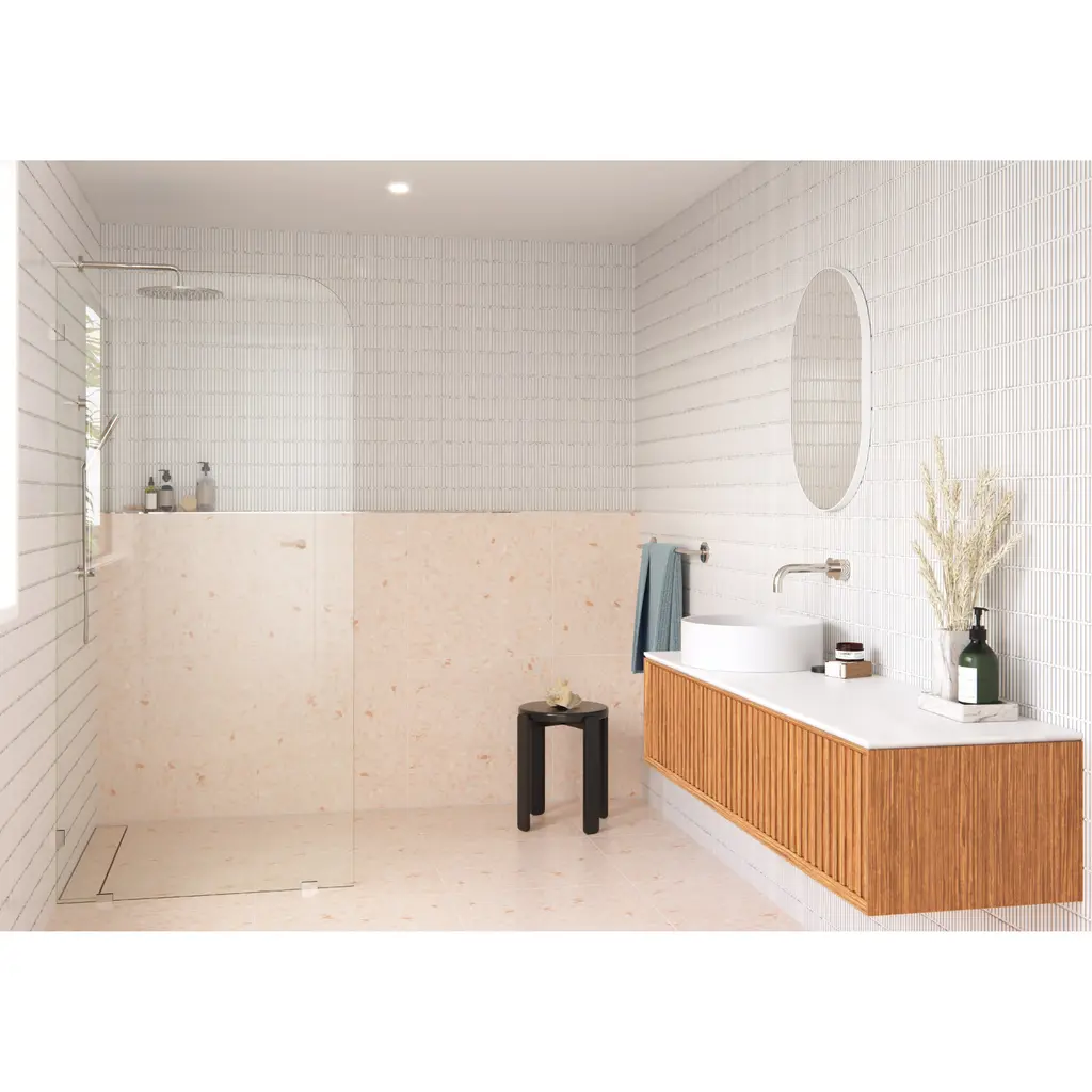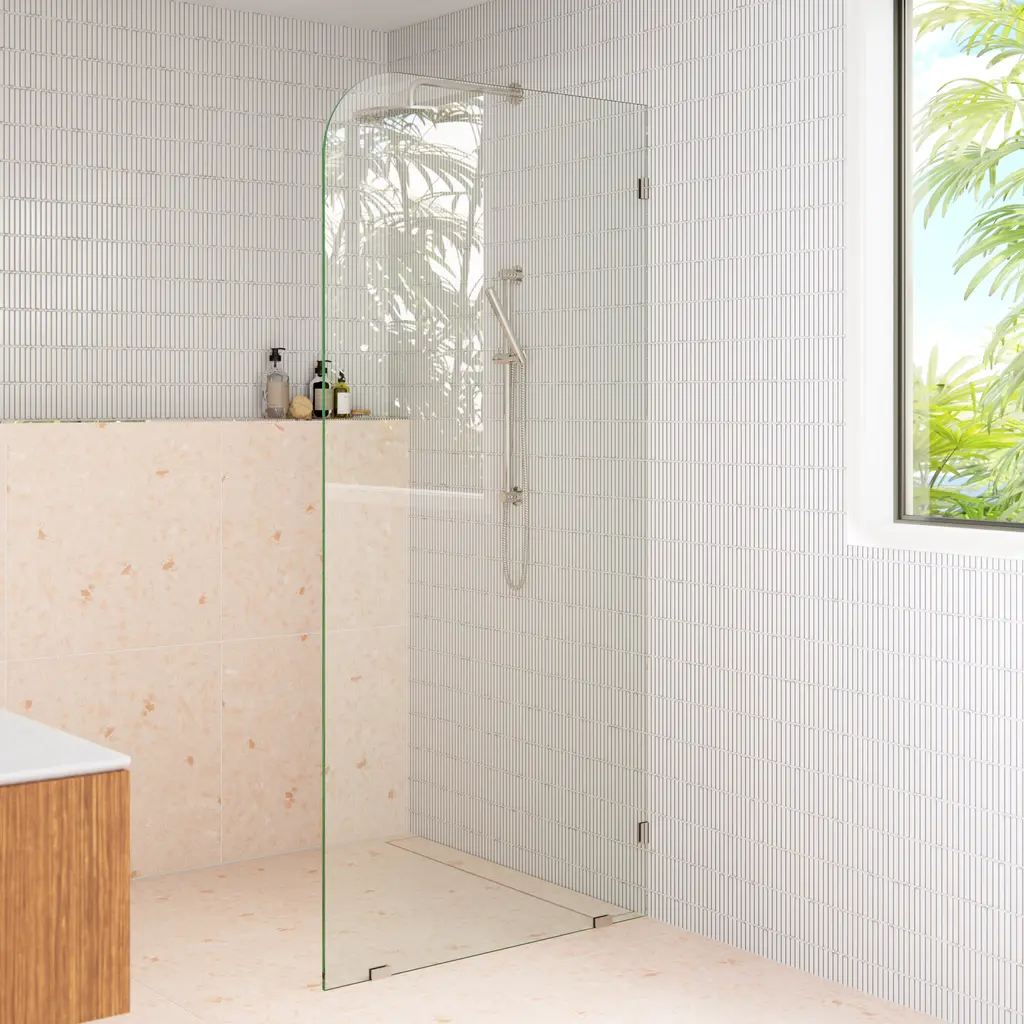 Enhance natural light and soften the edges of your bathroom with the Solaris, our stylish fixed shower panel. Taller than most competitor shower panels, each frameless 3/8” tempered glass panel comes in a standard 78” height. Glass is treated on both sides with EnduroShield coating, which aids in repelling water and soap residue, allowing the panels to be fully reversible. In addition, our superior quality solid brass hardware is available in a variety of color finishes to suit any bathroom. With our extensive range of fixed shower panel sizes, the sophisticated Solaris enclosure by Glass Warehouse features an elegantly curved silhouette that adds a sense of comfort and warmth to your space. Features: