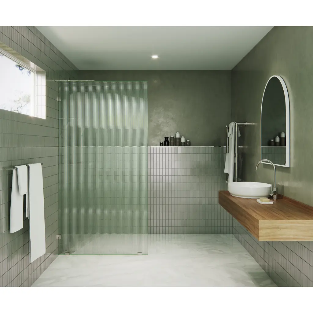 A beautifully crafted design piece with a stylish, elegant feel, the Gaia is a fluted glass, fixed shower panel. Taller than most competitor shower panels, our frameless 3/8” tempered glass panels come in a standard 78” height. Glass is treated with EnduroShield coating, which aids in repelling water and soap residue. In addition, our superior quality solid brass hardware is available in a variety of color finishes to suit any bathroom. With our extensive range of fixed frameless glass panel sizes, the Gaia by Glass Warehouse is an enclosure designed to diffuse the light in your bathroom, maintaining privacy as you shower while maximizing the natural light.