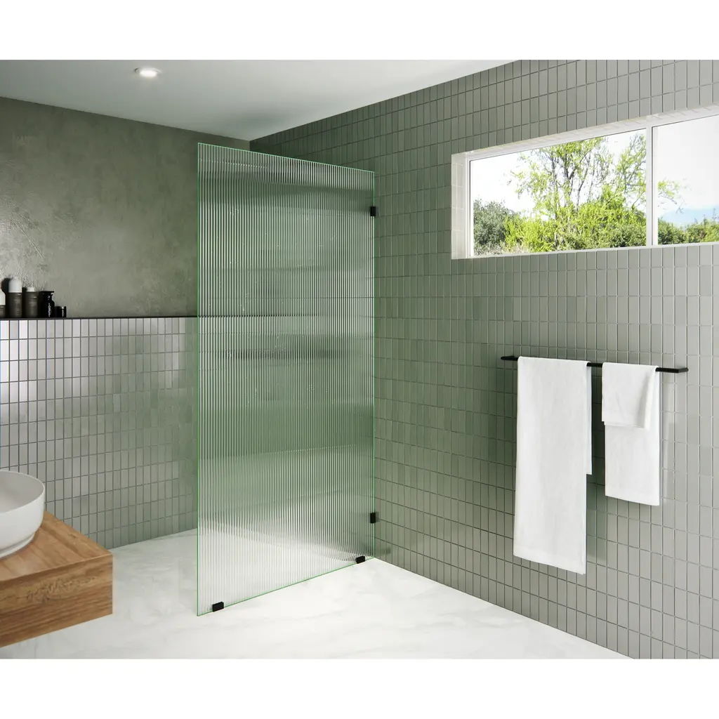 Glass Warehouse 40" X 78" Frameless Shower Door - Single Fixed Panel Fluted Frosted - Matte Black
