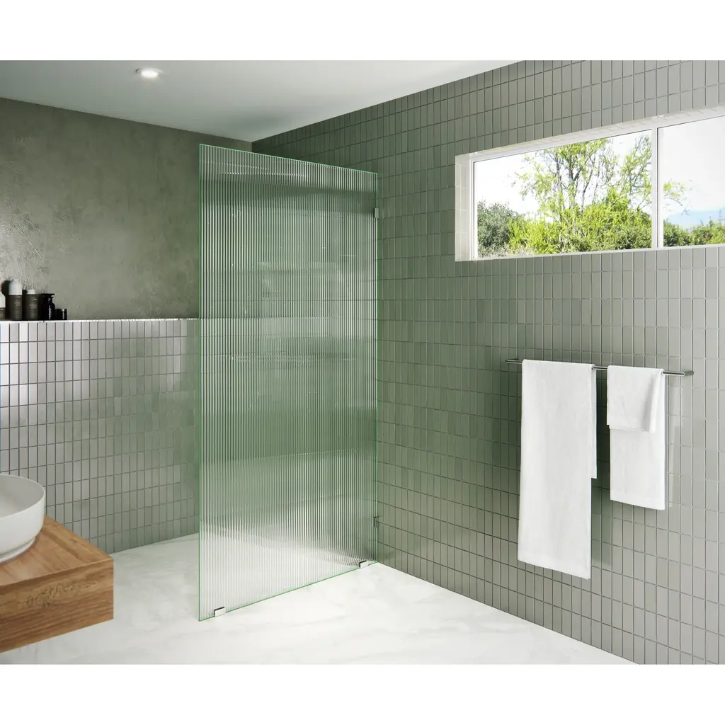 A beautifully crafted design piece with a stylish, elegant feel, the Gaia is a fluted glass, fixed shower panel. Taller than most competitor shower panels, our frameless 3/8” tempered glass panels come in a standard 78” height. Glass is treated with EnduroShield coating, which aids in repelling water and soap residue. In addition, our superior quality solid brass hardware is available in a variety of color finishes to suit any bathroom. With our extensive range of fixed frameless glass panel sizes, the Gaia by Glass Warehouse is an enclosure designed to diffuse the light in your bathroom, maintaining privacy as you shower while maximizing the natural light. Features: