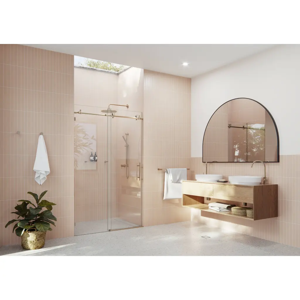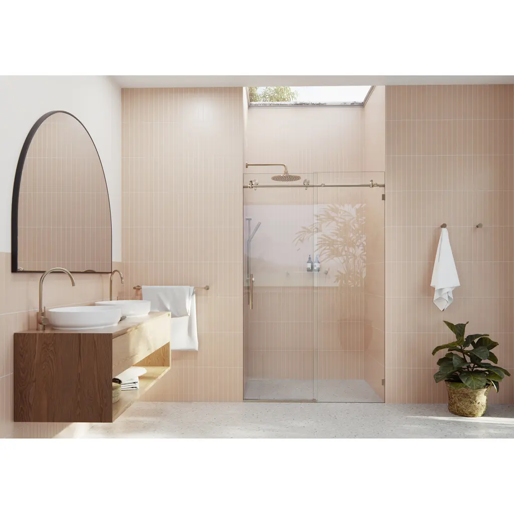 Upgrade your bathroom with the Glass Warehouse Frameless Sliding Shower Door. This high-quality shower door is designed to create an instant modern look that complements any bathroom style while making it appear brighter and more spacious. The brass fittings come in different finishes, adding to the beauty and versatility of this frameless shower door. At 78 inches tall, the GW glass shower door is the standard height for all panels, providing unmatched style and exceptional value. GW glass surpasses American and International Standard codes, ensuring you get a product that meets top-quality standards. Additionally, the Enduroshield coating keeps your shower door clean by repelling water, soap scum, and grime, reducing cleaning time by up to 90%. Glass Warehouse presents you with a quality product that will stand the test of time.Features:
