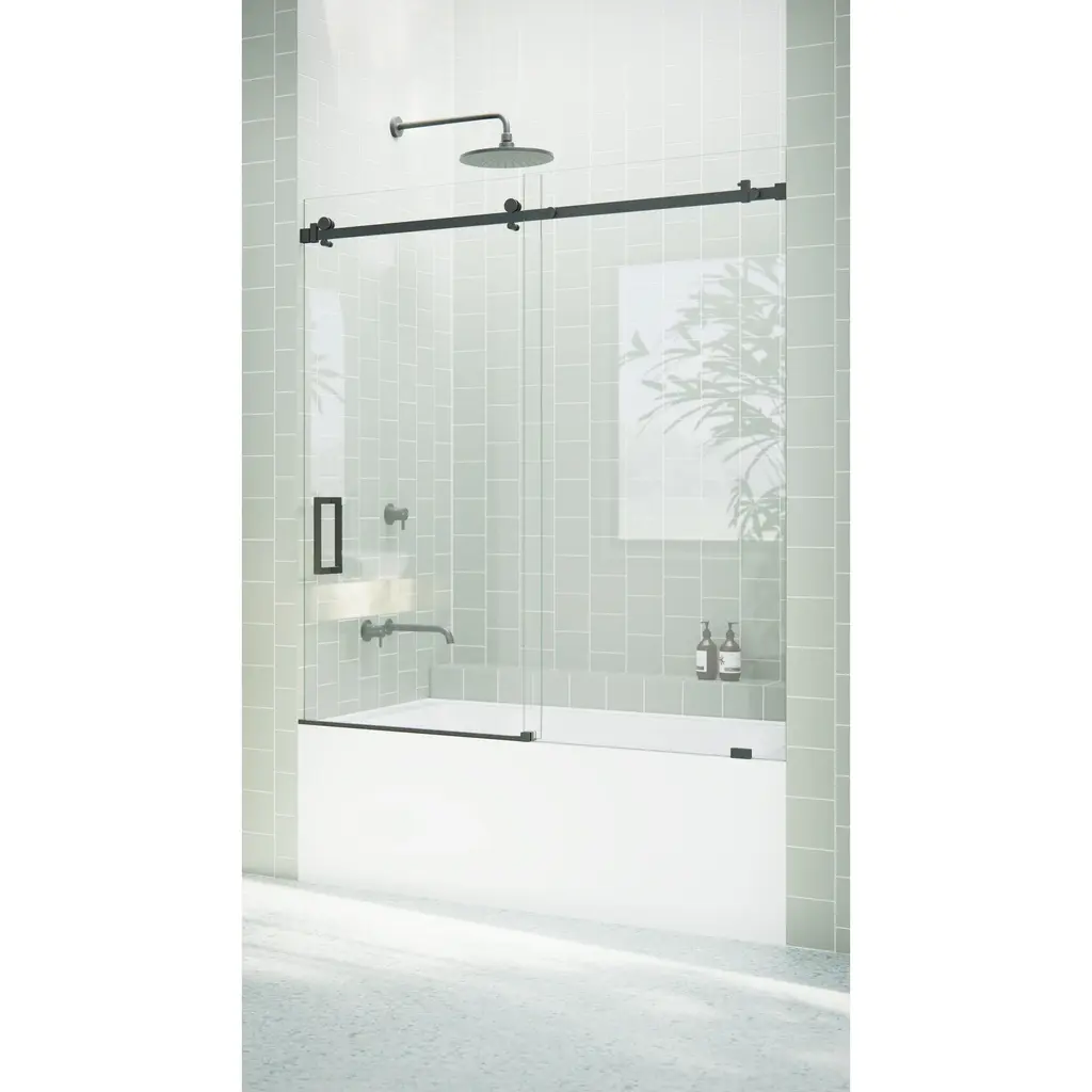 Glass Warehouse 52 In. - 56 In. X 60in. Frameless Bath Tub Sliding Shower Door With Square Hardware - Matte Black