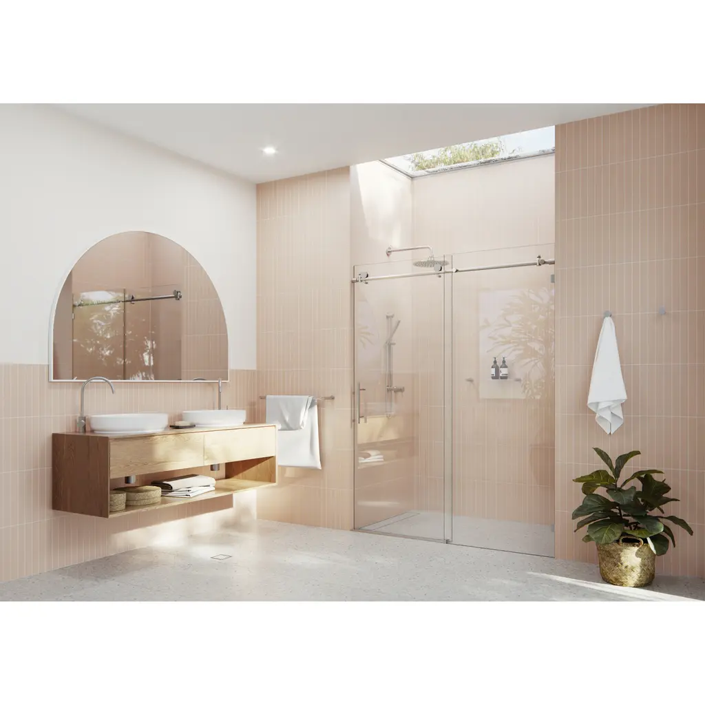 Make your bathroom feel more spacious and modern with the Glass Warehouse frameless sliding shower door. Featuring high-quality brass fittings in a variety of beautiful finishes, this shower door stands out for its 78" height, which adds style and value to your purchase. The GW glass shower door exceeds American and international standards, and is coated with the revolutionary Enduroshield treatment that repels water, soap scum, and grime. With its superior quality and durability, the Glass Warehouse frameless sliding shower door is an investment you'll love for years to come.Features: