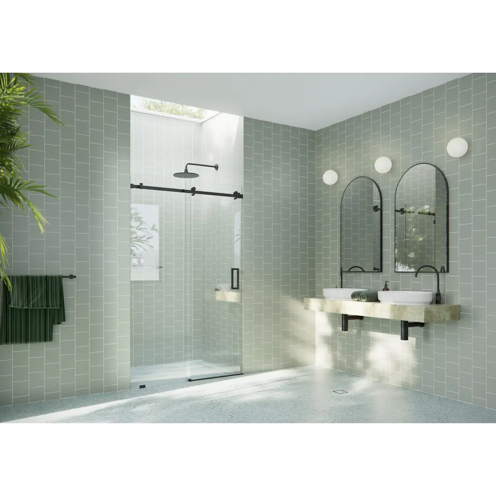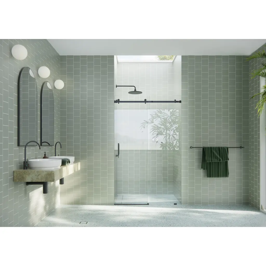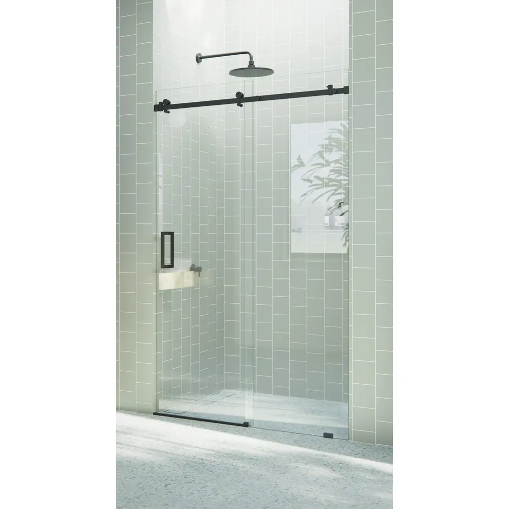 Glass Warehouse 52 In. X 78 In. Sliding Frameless Shower Door With Square Hardware - Matte Black
