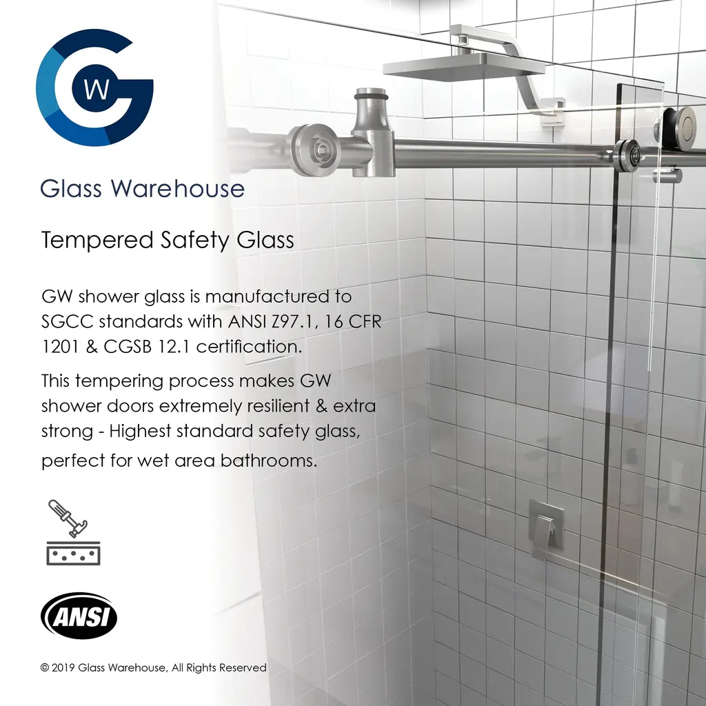 Upgrade your bathtub with the high-end Eclipse sliding door model by Glass Warehouse. Enjoy the superior quality and durability of 3/8" frameless tempered glass panels, treated on both sides with EnduroShield coating to repel water and soap residue. The sleek design features solid brass hardware in a variety of color finishes to match any bathroom decor. The shower enclosure is fully reversible and effortlessly slides on high-quality stainless-steel rollers.Features: