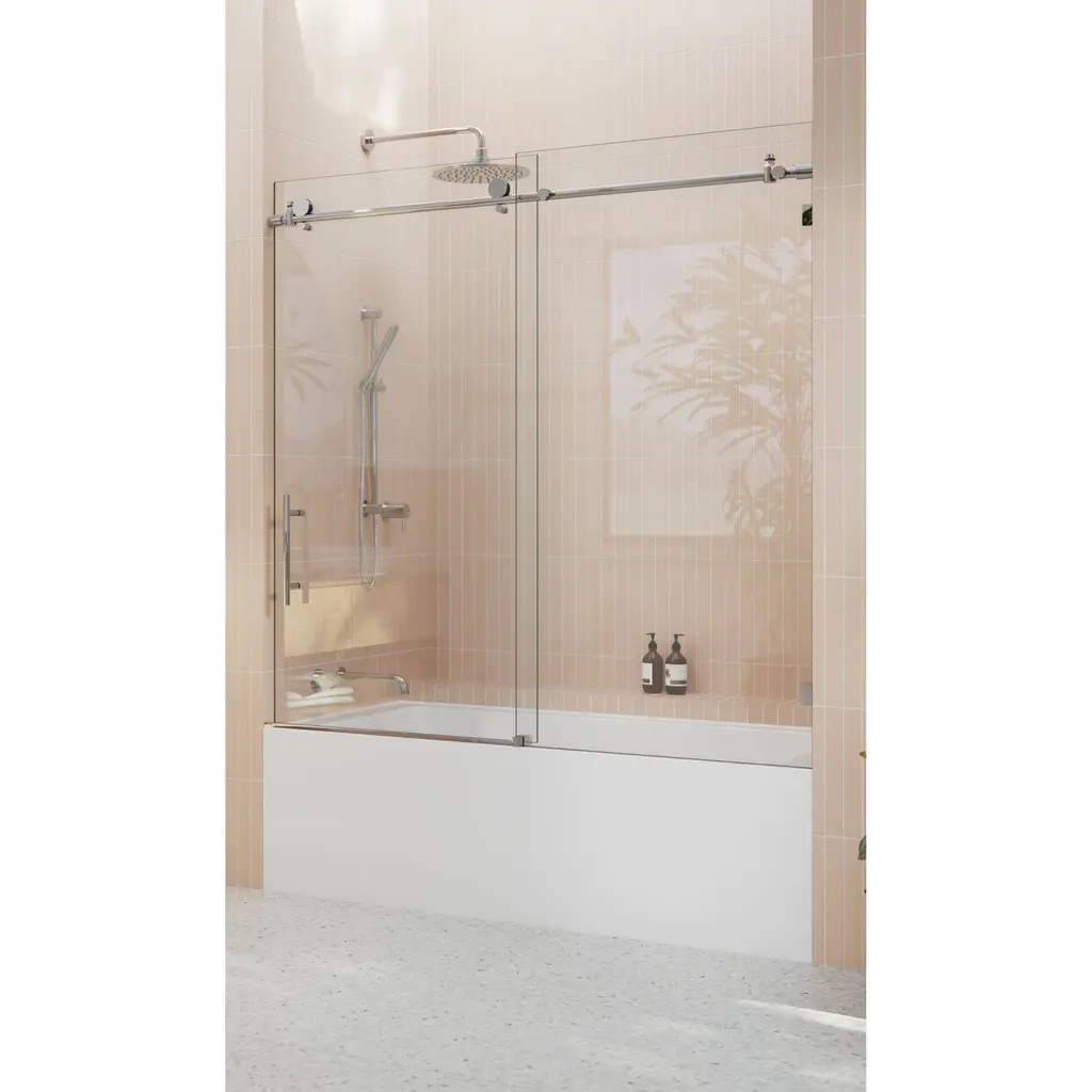 Glass Warehouse 56 In. - 60 In. X 60in. Frameless Bath Tub Sliding Shower Door - Polished Chrome