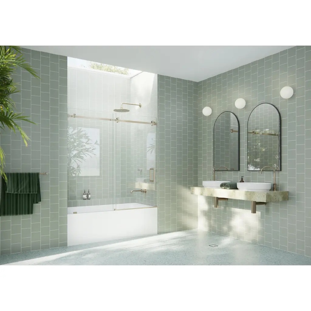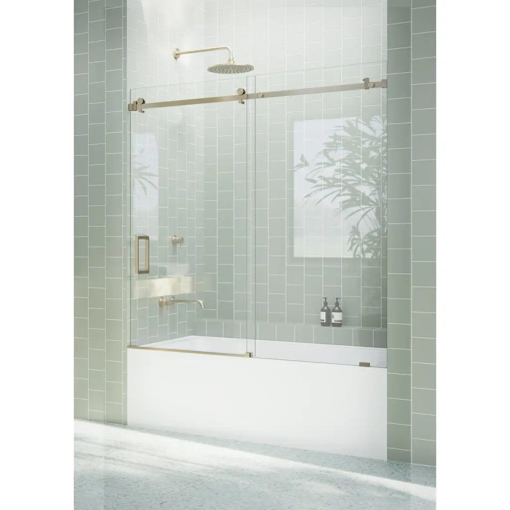Glass Warehouse 56 In. - 60 In. X 60in. Frameless Bath Tub Sliding Shower Door With Square Hardware - Brushed Bronze