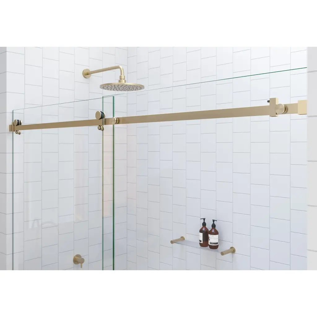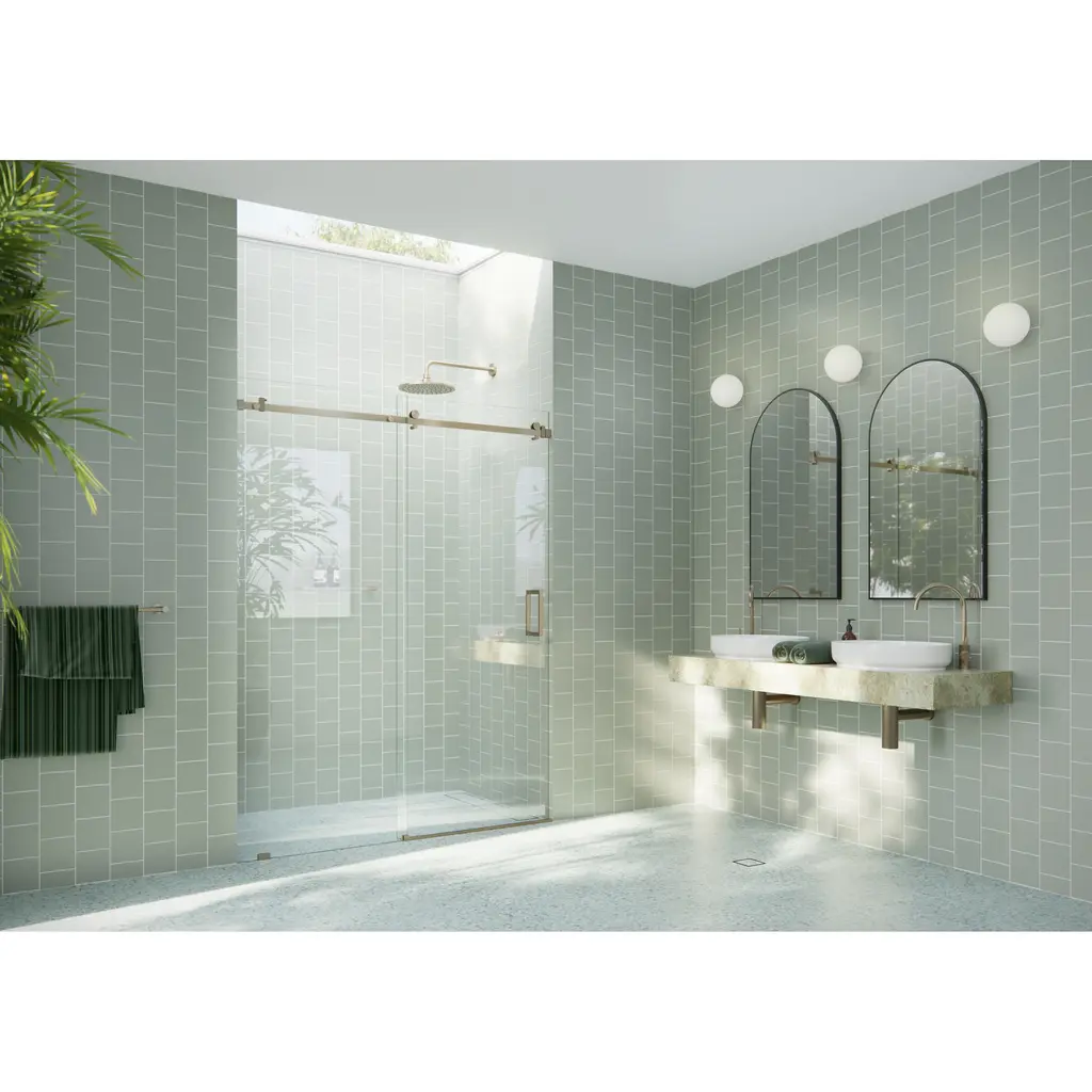 Glass Warehouse 56 In. X 78 In. Sliding Frameless Shower Door With Square Hardware - Brushed Bronze