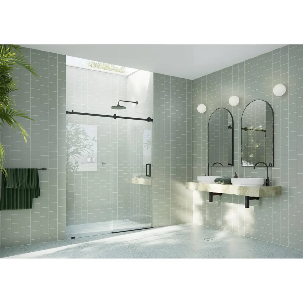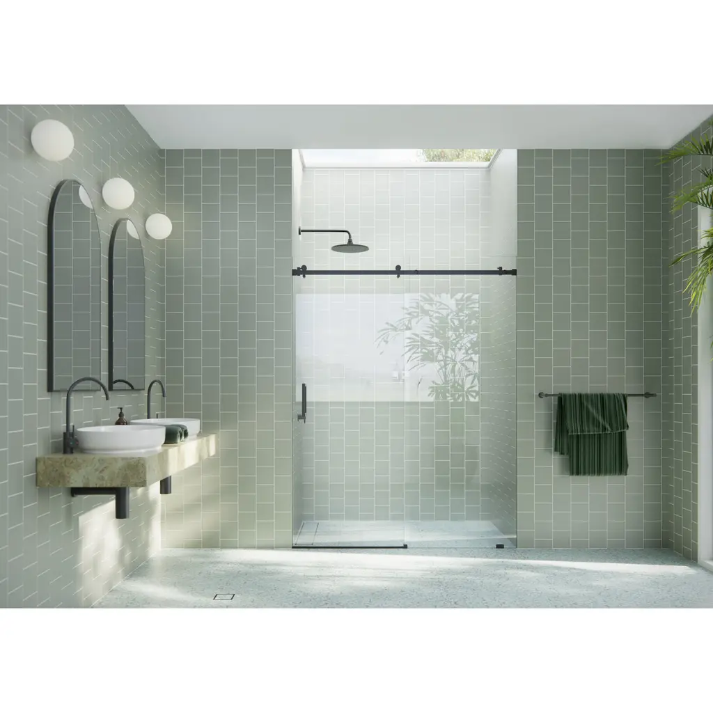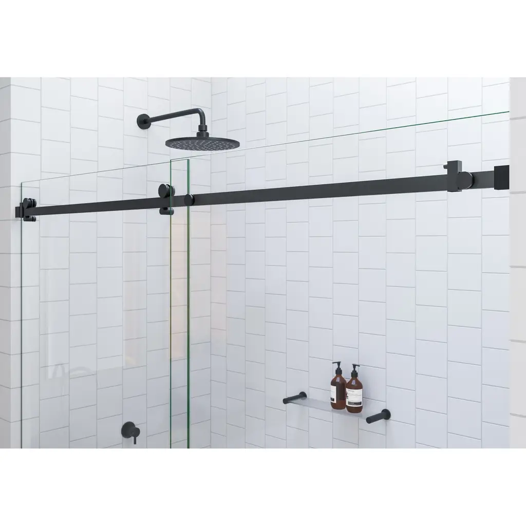 Glass Warehouse 56 In. X 78 In. Sliding Frameless Shower Door With Square Hardware - Matte Black