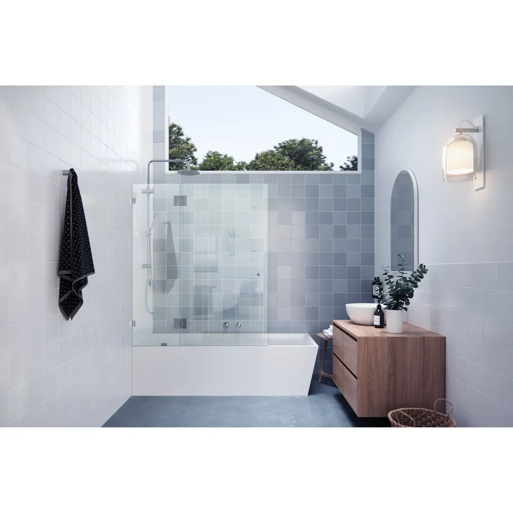 Glass Warehouse 58.25" X 48.5" Frameless Shower Bath Door - Glass Hinge - Polished Chrome