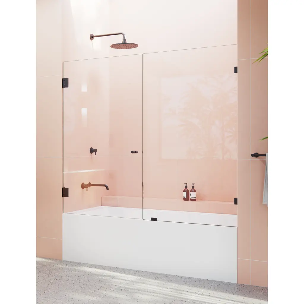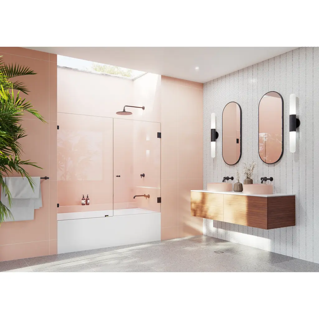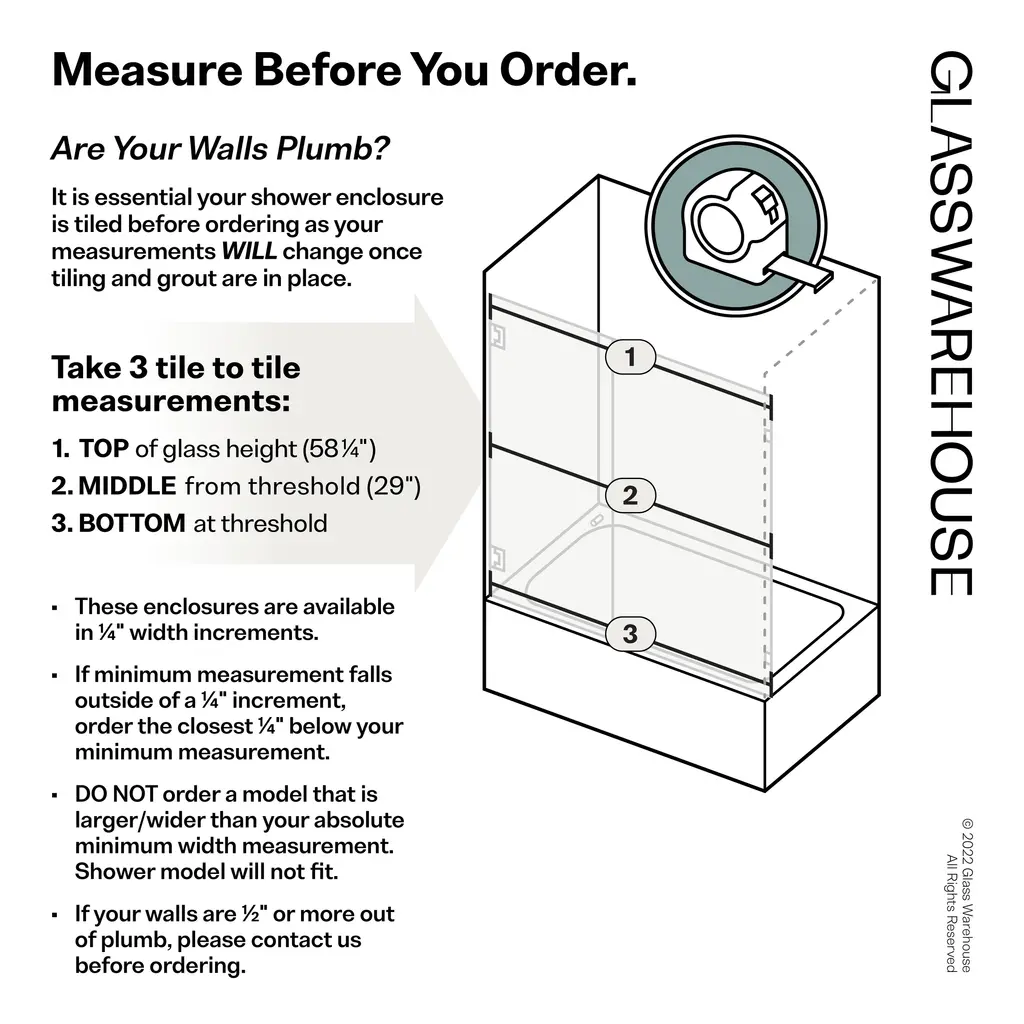Glass Warehouse 58.25" X 66" Frameless Shower Bath Door - Wall Hinge - Matte Black