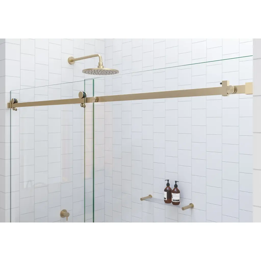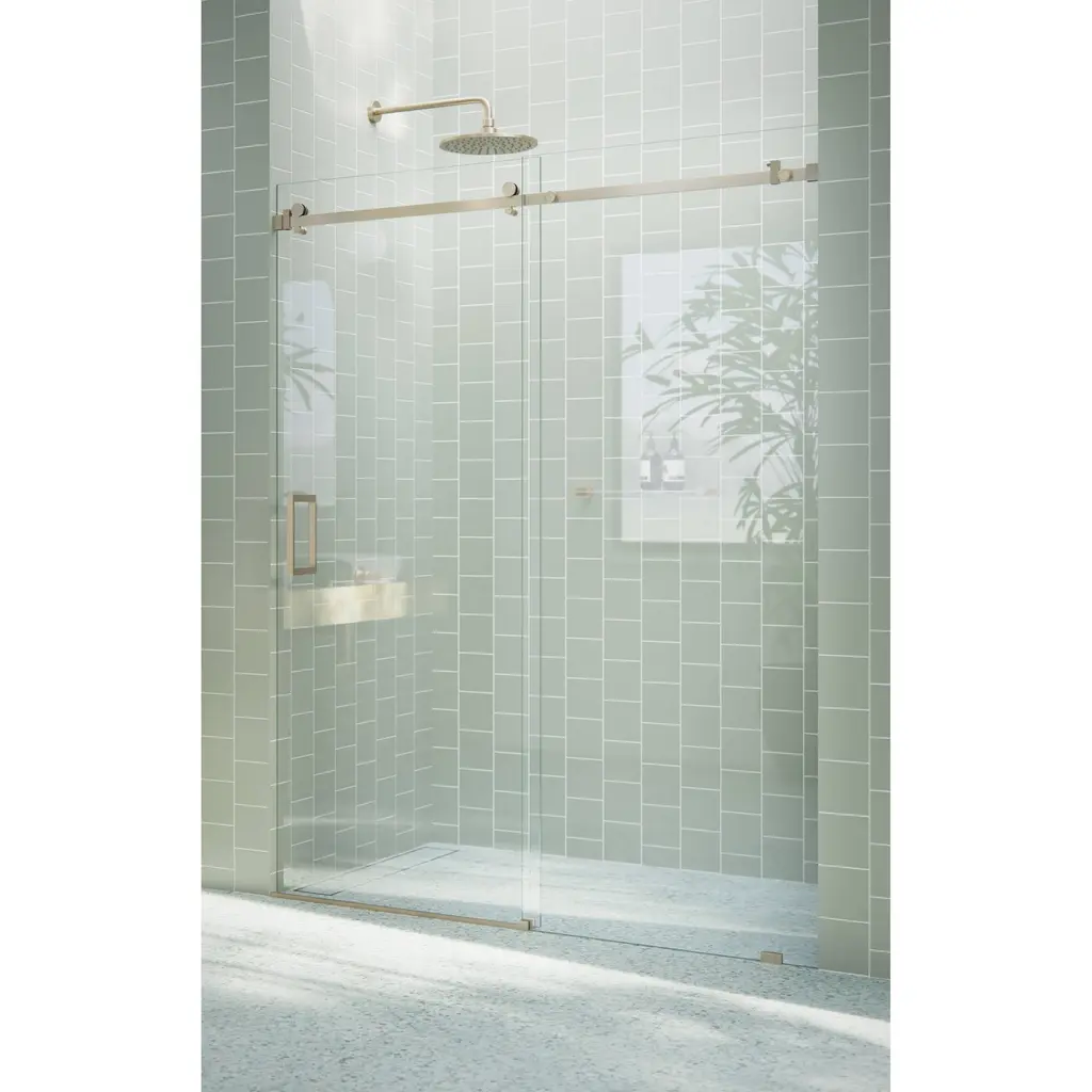 Glass Warehouse 64 In. X 78 In. Sliding Frameless Shower Door With Square Hardware - Brushed Bronze